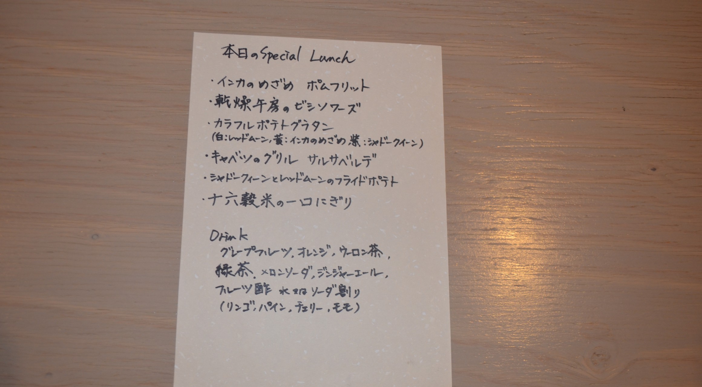 オーナーシェフ高井氏により、越冬野菜を使った創作料理が提供された。主に、じゃがいもを使った 創作料理であり、越冬で身につけた野菜の糖度とシェフの腕で越冬野菜の美味しさを体感できた。高井氏曰く、越冬野菜は、有機野菜に匹敵するほどの滋味を兼ね備えるとのこと。越冬野菜の最盛期は、1月から5月とのことで、今後の活動の拡がりを感じた。