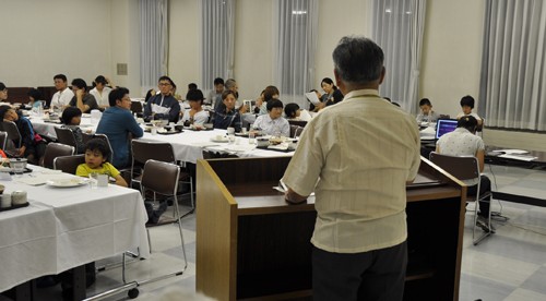 19:20~19:50 ホタルの生態・ホタルの生きられる環境保全・川の環境保全など 講和、「めむろホタル自然ふ化の会」の方から ・ホタルの自然ふ化を始めるに至った経緯の説明 ・ホタルの住める環境整備の説明 ・ホタルの生態・1年間様に過ごして居るか説明 ・これまでの活動状況も含めて説明 *皆さん関心を持たれ、聞き入って居ました。
