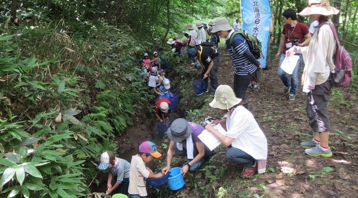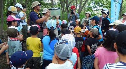 平岡公園は札幌市清田区の住宅街にある総合公園でありながら周囲を森に囲まれた自然豊かな公園であり、地域の小学校などの遠足や環境教育イベントにも利用されている。とくに公園内の池や湿地には希少な生物が生息しており、水圏環境の保全活動の推進が望まれる。そこで本事業では公園内の水辺 から水圏環境保全について考える場を地域住民に提供することを目的として、公園内の水辺の水生生物や水質などについて専門家の説明を交えながら学ぶ「都市公園の水辺から学ぶ環境保全」事業を計画した。なお本事業は平岡公園管理事務所、酪農学園大学、市民活動団体平岡どんぐりの森の3者で構成された夏休みにぎわい隊が平岡公園にて毎年実施する夏休みにぎわいフェスタの一環として実施した。本法人が加わる事で主体となる団体やイベント自体のステップアップも図った。