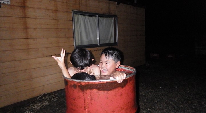 夜はドラム缶風呂に入り、野外にテントを立てて宿泊した。野外 にテントを立てて宿泊するのは今回が初めてである(今までは、 センター内で寝袋就寝)。薪を焚いてお湯を沸かしたり、大型テ ントを設営したりなど、大人スタッフの力を借りながらではあるが、子供達の力で実施することができた。 マガレンジャーキャンプでは食事の準備も子供達自身で行う。食事の準備に関しては、毎度のことなので、年長メンバーが年少メ ンバーに教えながら、今まで実施したことのある隊員が新しいメ ンバーに教えながら、子供達のみで準備できた。新しいメンバーが加わり、まだコミュニケーションが 十分取れていない中での活動だったためか、カレーが水っぽくなったり、固いご飯になってしまったりと苦労していたが、最終的には美味しいご飯が出来上がっていた。 いろいろな失敗を乗り越えながら、隊員同士が仲良くなり 「イグルーで寝る冬キャンプをやりたい」 「コウモリ調査 をリベンジしたい」など、解散の頃には自然にやりたいことを話し合う雰囲気になっていた。