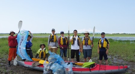 サロベツ湿原のほぼ中央に位置するペンケ沼は、渡り鳥の中継地及び、多くの動植物の生息地になっており、平成17年にはラムサール条約湿地に登録されるなど、非常に豊かな生態系を支えています。し かし、昭和初期の農地開発にかかる排水路整備によりペンケ沼には上流から土砂が流入し、それに伴い 上流から生活廃棄物等も流れてくるようになりました。そのため、国立公園の優れた景観と自然環境を保全することを目的として、ペンケ沼への流入河川である下エベコロベツ川とペンケ沼において、カヤ ックに乗り込み、散在しているゴミを収集しました。