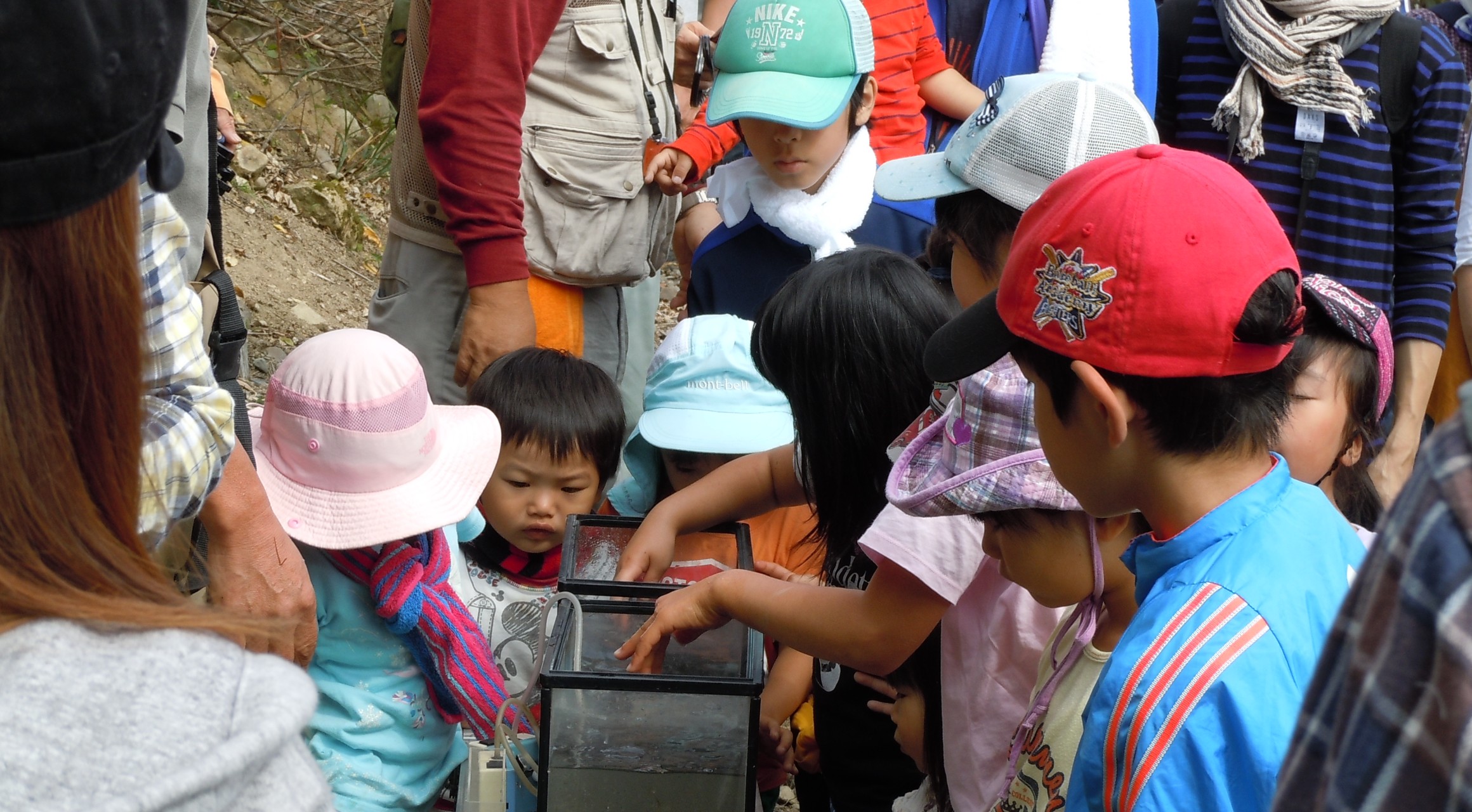 自然観察会では、初めて遭遇する昆虫、水生動物、植物に興味をもち、触れたり捕まえたりして の観察等を勉強しながら、山ブドウがなっている木の下に、普通のブドウのようになっている。食 べてみると「すっぱい」と返ってくる。だけど普通のブドウだよと教わる。 「こういう経験なかったの」「水の中冷たくても喜んでやっている」「去年と今年では行動が全然 違う。大人になってきている」「けっこう楽しんでいる」とお母さん達。体験学習の他、子供達の健 康にもほんの少しだけ力になっているかな。 自然環境と農業地帯の保全を図るには、継続していることが肝要と思います。