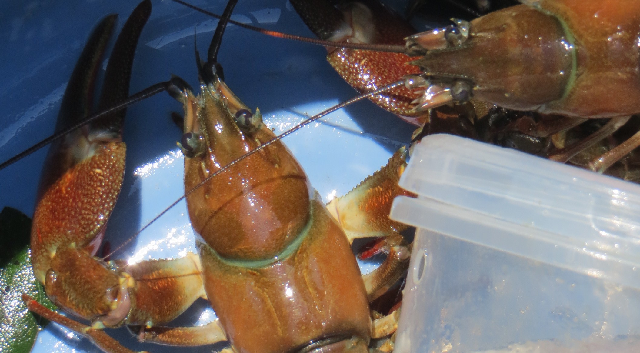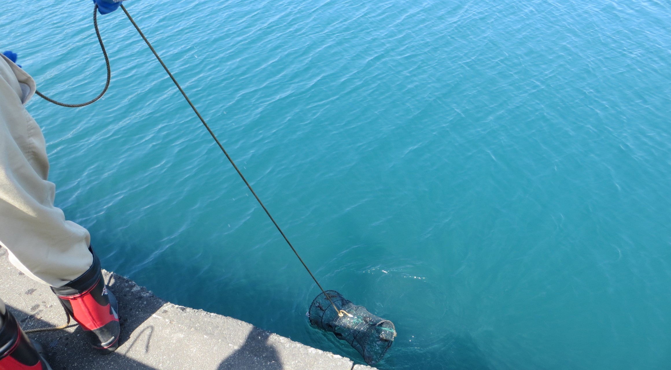 ~毎日網かごを仕掛けているそうですが、この日もひとつの網かごに10匹ほどが入っていました!~