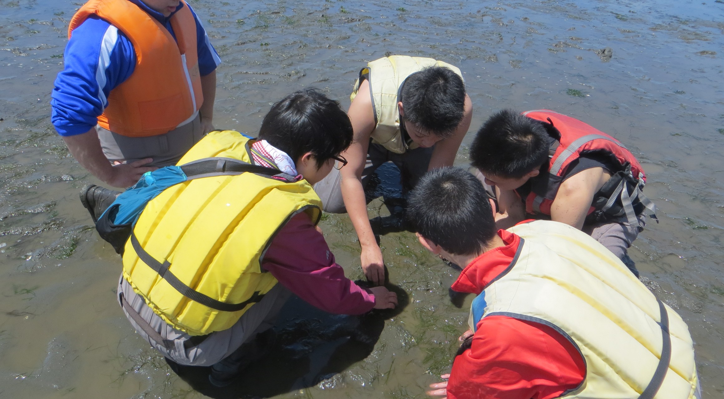 【浜中】 琵琶瀬川河口部に広がるアマモ場のモニタリングを行います。豊かな海を支えるアマモ場を間近で観察し、生えているアマモ類の量を目視で測定します。(現地へはカヌーまたは漁船で移動します。)