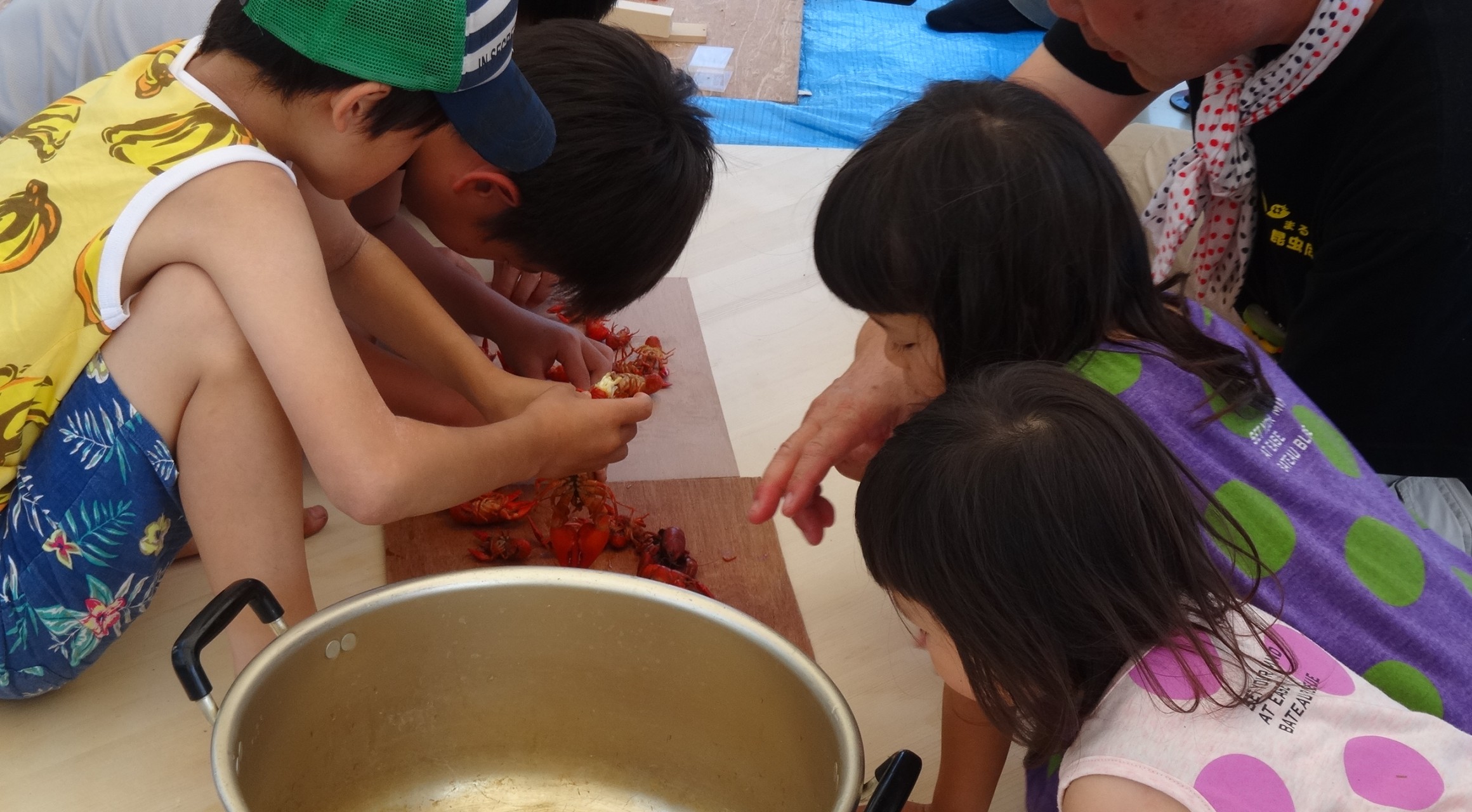 ウチダザリガニの駆除活動は、同好会会員の事前の生態調査からポイントを決め実施しました。子ど もたちでも、簡単に大量に捕獲できたことで、繁殖が進んでいることがわかり、その後のポスター作り にも力が入りました。ウチダザリガニから武利川を守ろうという気持ちが高まりました。駆除活動は、 観光祭りでも開催し、町民やキャンパーに捕獲・観察・試食を行いました。