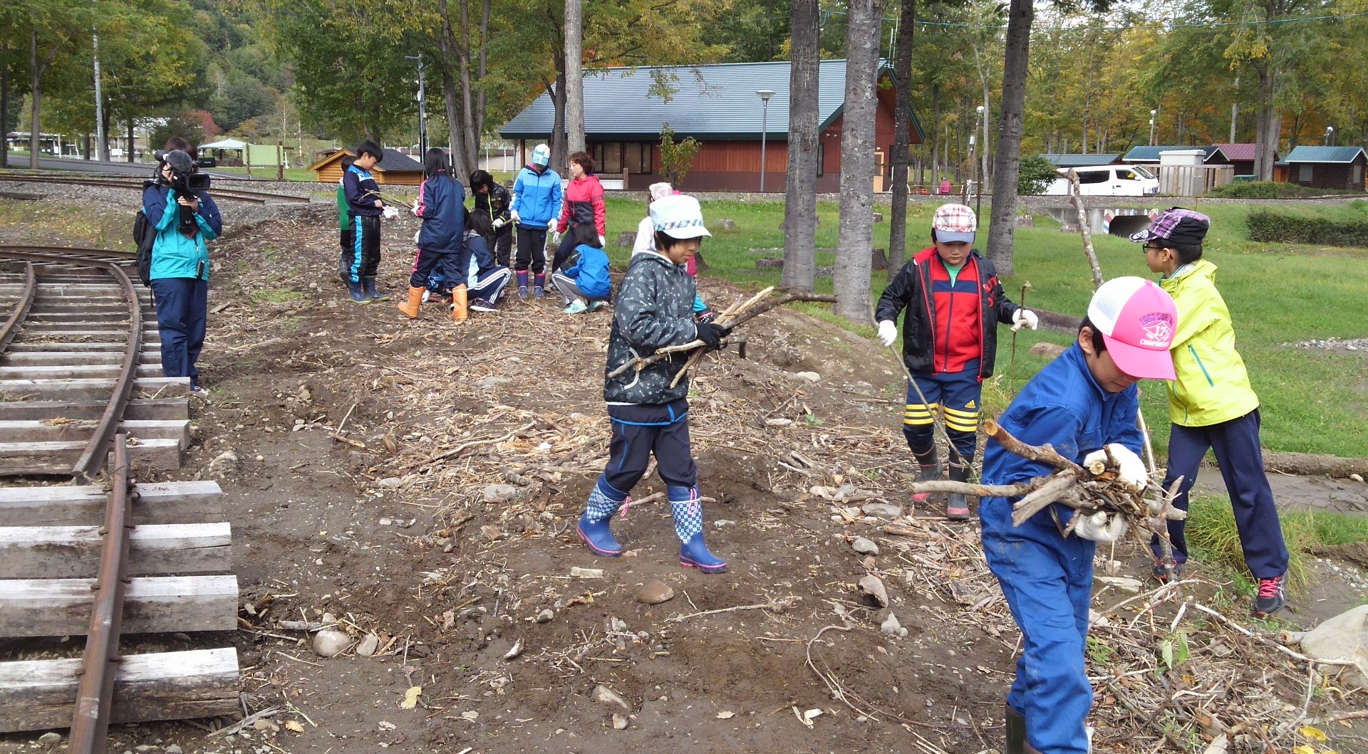 9月に予定していた、ポスターによる町民への周知活動は、台風による武利川の氾濫により、教育事 務所のみの配布となりました。予定を変更して活動のフィールドである「いこいの森」の被害を映像で 学習しました。洪水の恐ろしさを知りました。その後、復興ボランティア活動として流木拾いを行いま した。テレビや新聞で報道されて評価されました。