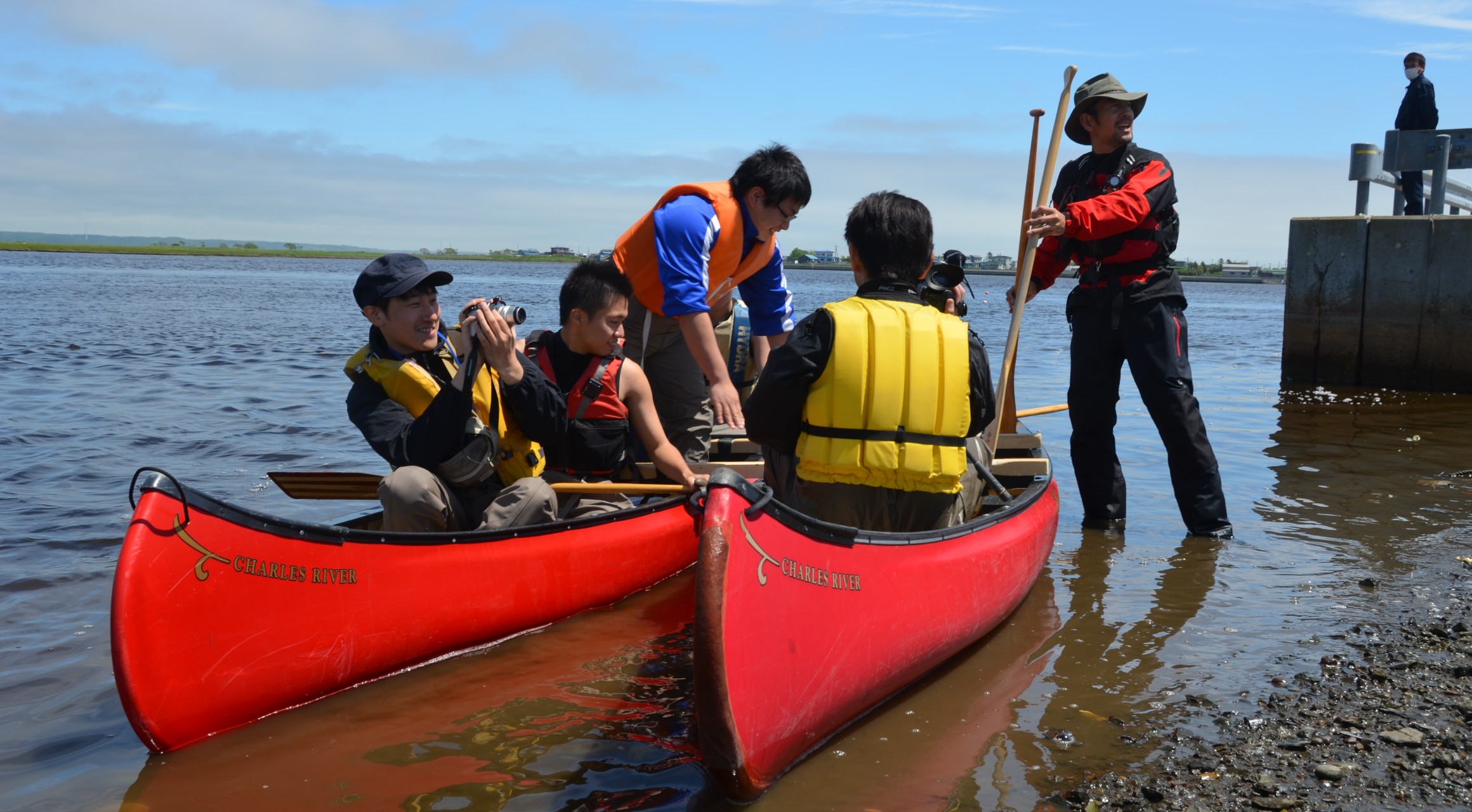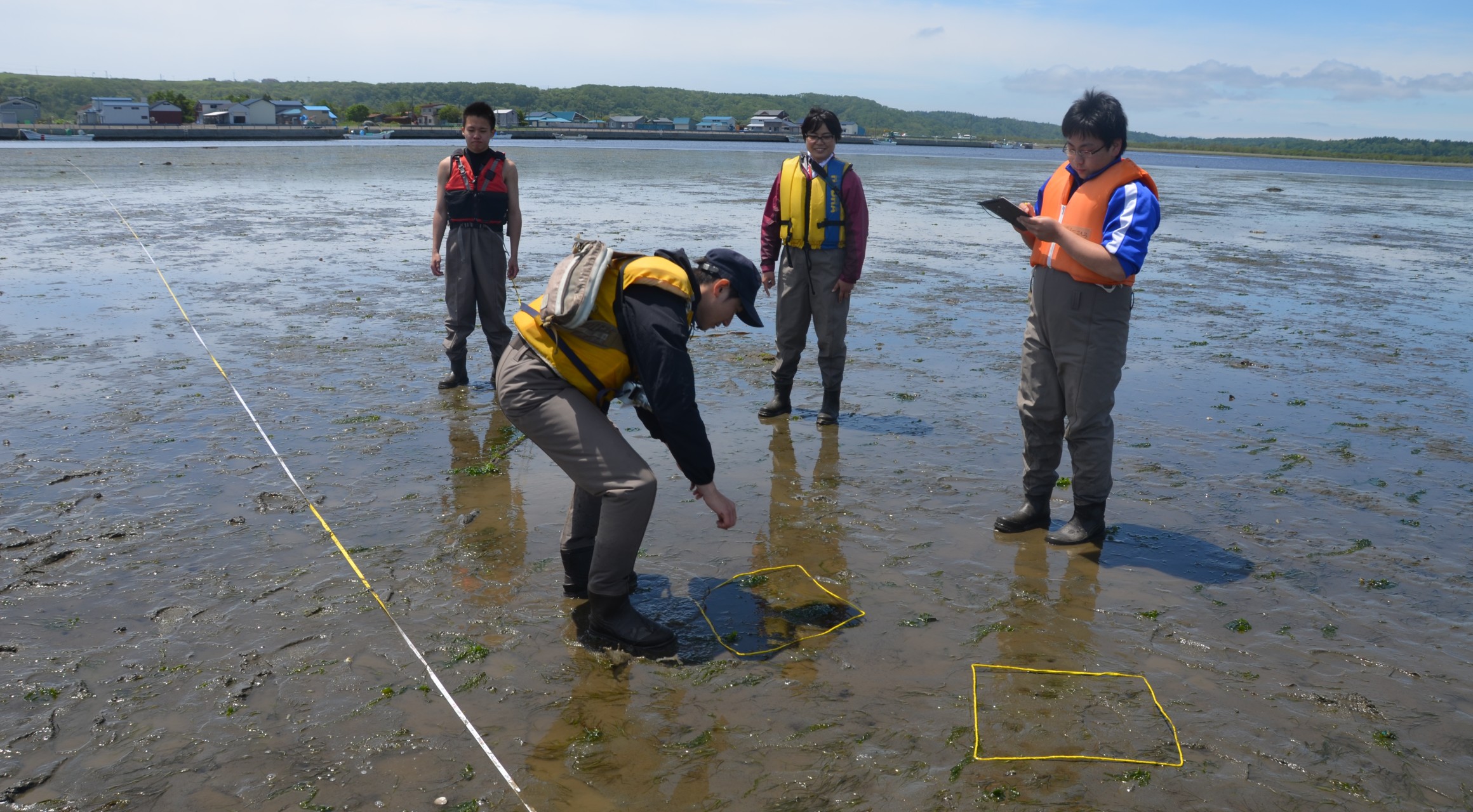 特定非営利活動法人霧多布湿原ナショナルトラストでは、2016 年北海道 e- 水プロジェクト助成金 を受けて、「海と湿原のつながり調査プロジェクト」を実施しました。本プロジェクトは、森から湿原 を経て海へといたる流域の「つながり」を明らかにし、浜中町の豊かな海産物に付加価値をつけること で、漁業を中心とした経済活動と流域の環境保全が両立する町づくりを目指して、2012 年より調査を 続けてきました。2016 年はまとめの年として、1)環境教育プログラムとして機能するモニタリング 活動「アマモウォッチ」の実施 2)つながりフォーラムを開催しました。 2016 年のアマモウォッチは 6 月に実施し、浜中町立霧多布高校の生徒 9 名が参加しました。事前 にアマモ場に関するレクチャーを行い、当日はカヌーで現地に上陸して調査を行いました。調査の結果、 2016 年はおよそ 5 ~ 20%被度のアマモ場が広がっており、2015 年とほぼ変わらないレベルで繁 茂していることがわかりました。高校生からは「アマモがあることは知っていたけれど、こんなにいろ んな役割があることは知らなかった」「興味がわいた」などの声が聞かれました。