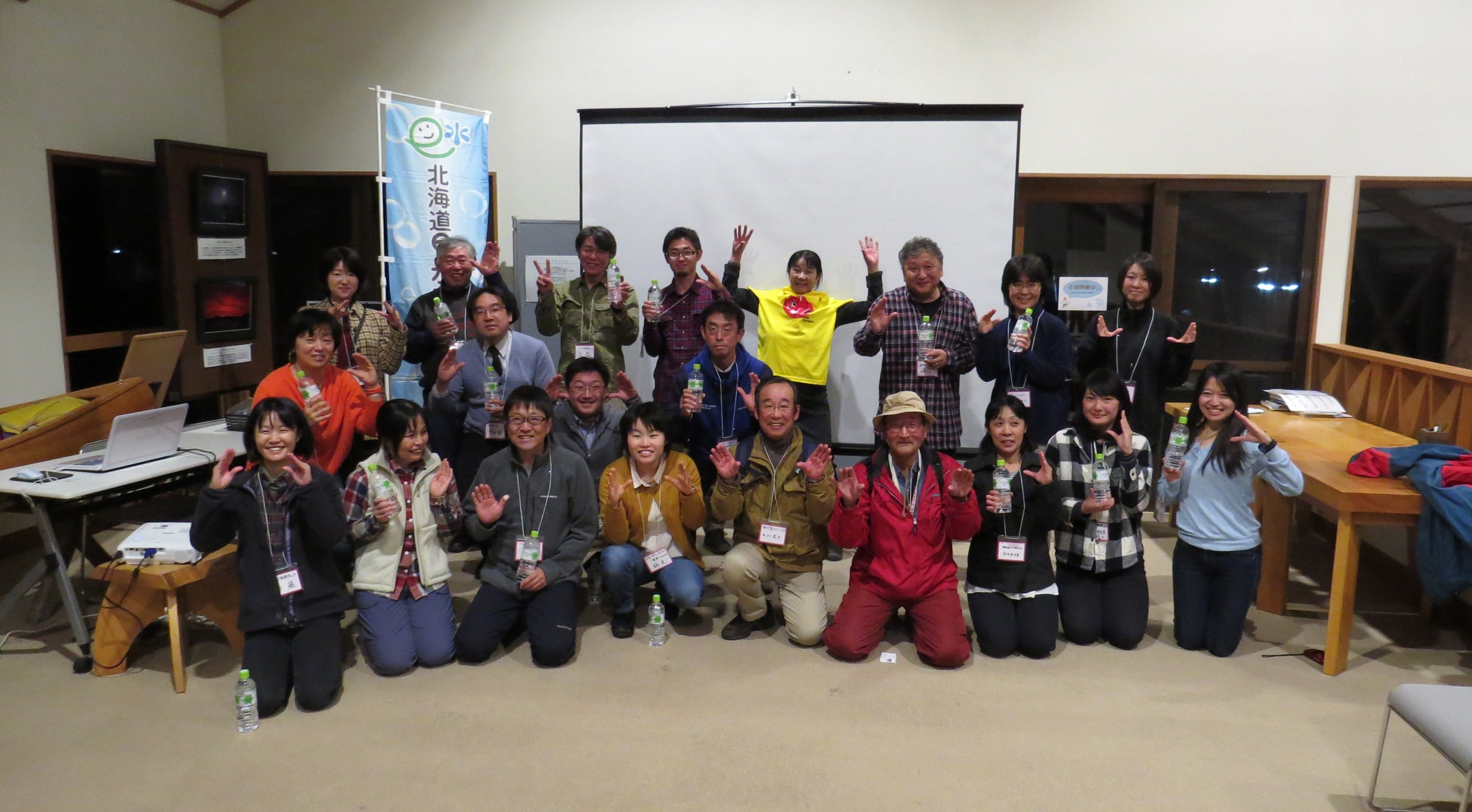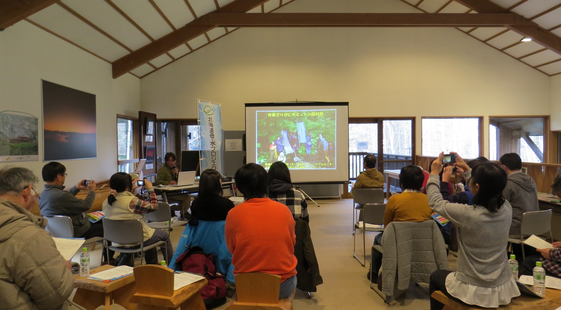 11月は屈斜路湖のほとり、川湯温泉で「外来ざりがにサミット」を開催しました。地元から「チームくっ しゃろ」、遠くは洞爺湖から「UW クリーンレイク洞爺湖」など8地域から防除団体の主要メンバーが集結し、 お互いの活動状況を発表しました。白熱した議論は宿泊先の部屋で、深夜まで続きました。それまでは「線」だっ た交流が「網の目」なったと感じることができました。
