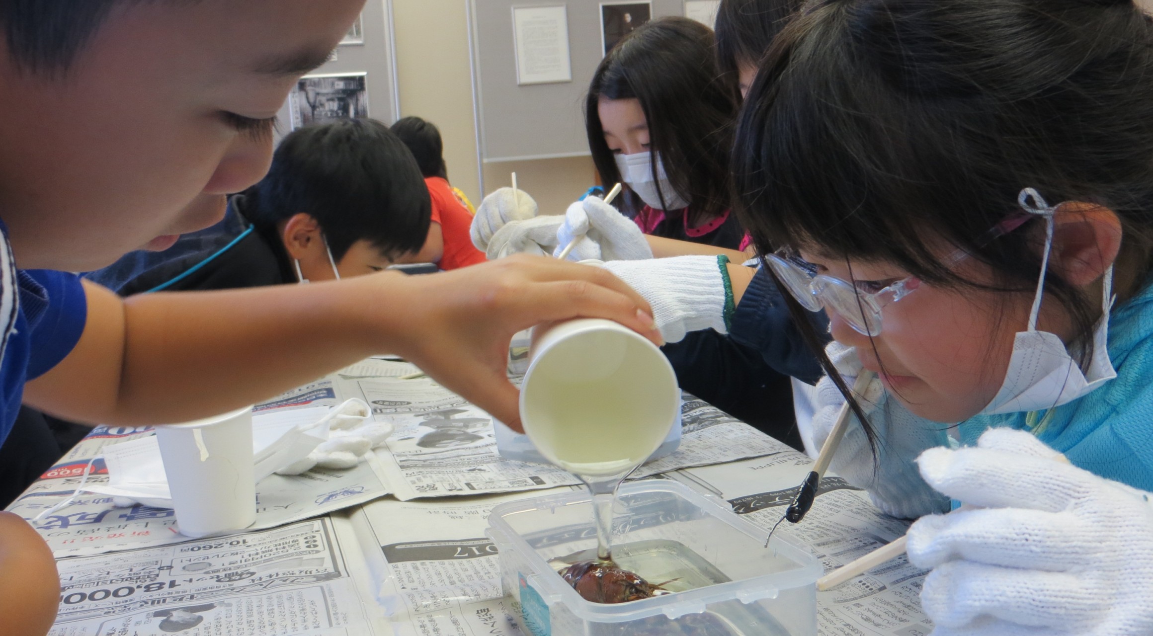 【丸瀬布】 水生昆虫の標本づくり2子どもたちと採集した水生昆虫やウチダザリガニ等を使って、標本づくりをします。
