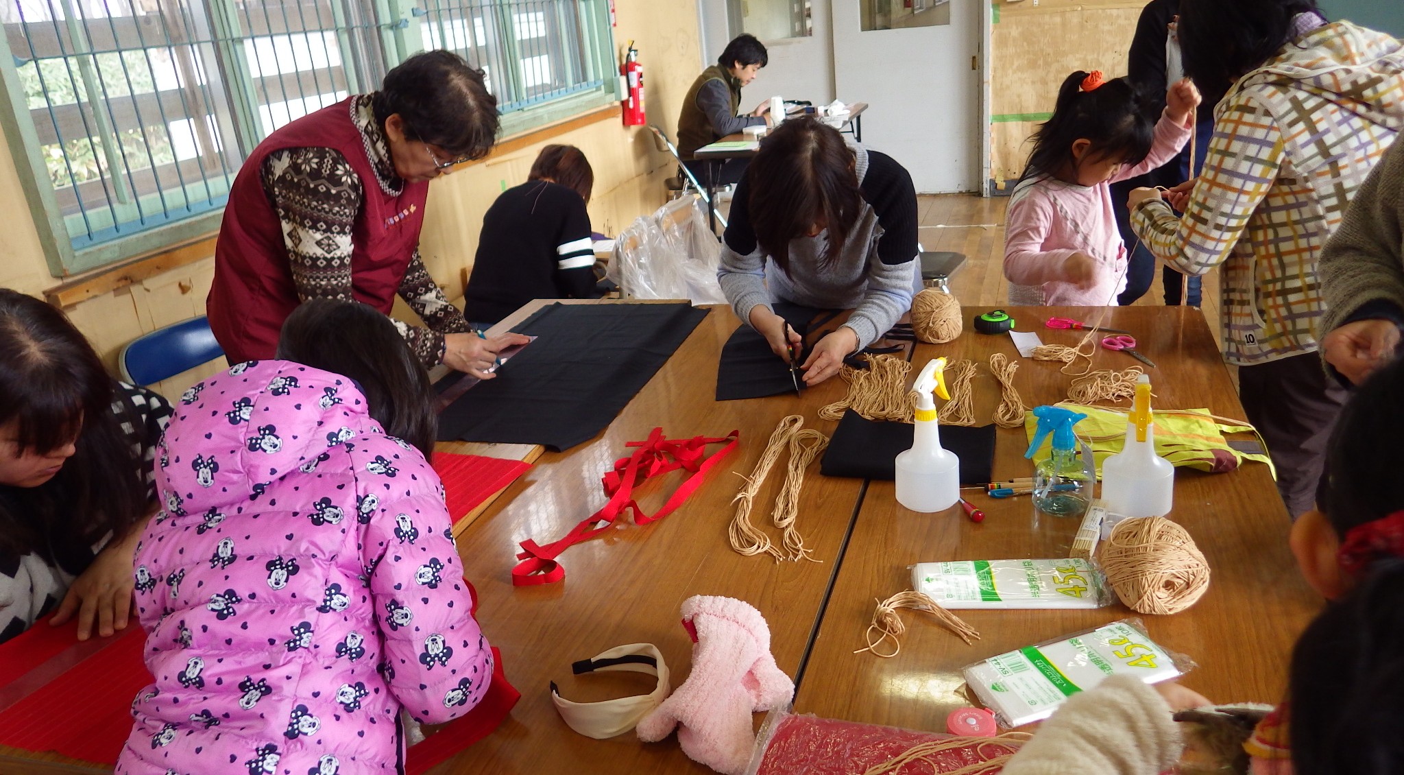 11月12日当日は子ども8名を含む21名の方が参加しました。午前中はガマを採集した当別自然再生地の観察。午後は、アイヌ文化活動アドバイザーである貝澤美和子氏、貝澤珠美氏の指導のもとゴザをつくるための編み機づくり、その後は作った編み機でゴザをつくりました。
