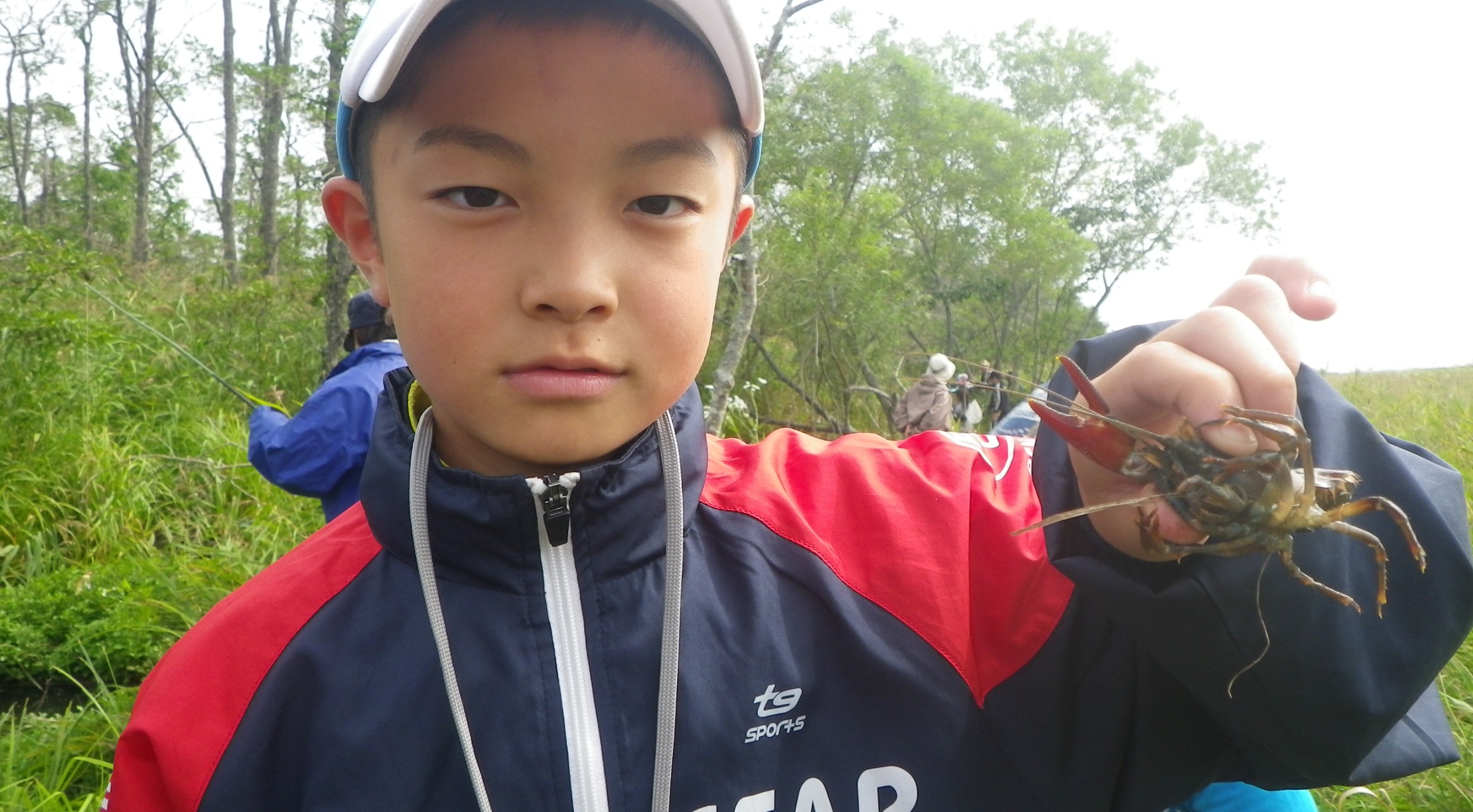 地域の小中学生を対象とした環境教育では、5月 28 日に湿原集水域の川の上流部を散策する川たんけん活動、9月3日にウチダザリガニ駆除活動と川の生きものさがし活動を実施しました。活動には、村内の小中学生延べ 33 名が参加しました。川たんけん活動では水の湧き出し口や蛇行する川の様子を観察し、自然河川の特長を学ぶとともに、水のきれいさや水量の豊富さや実感することができました。ウチダザリガニ駆除活動では、特定外来生物への知識やその問題点を学び、駆除に貢献しました。川の生きものさがし活動では、ヤマメやカジカなどの魚類のほかヤゴなどの昆虫類を観察スケッチし、生きものの多様性を実感しました。