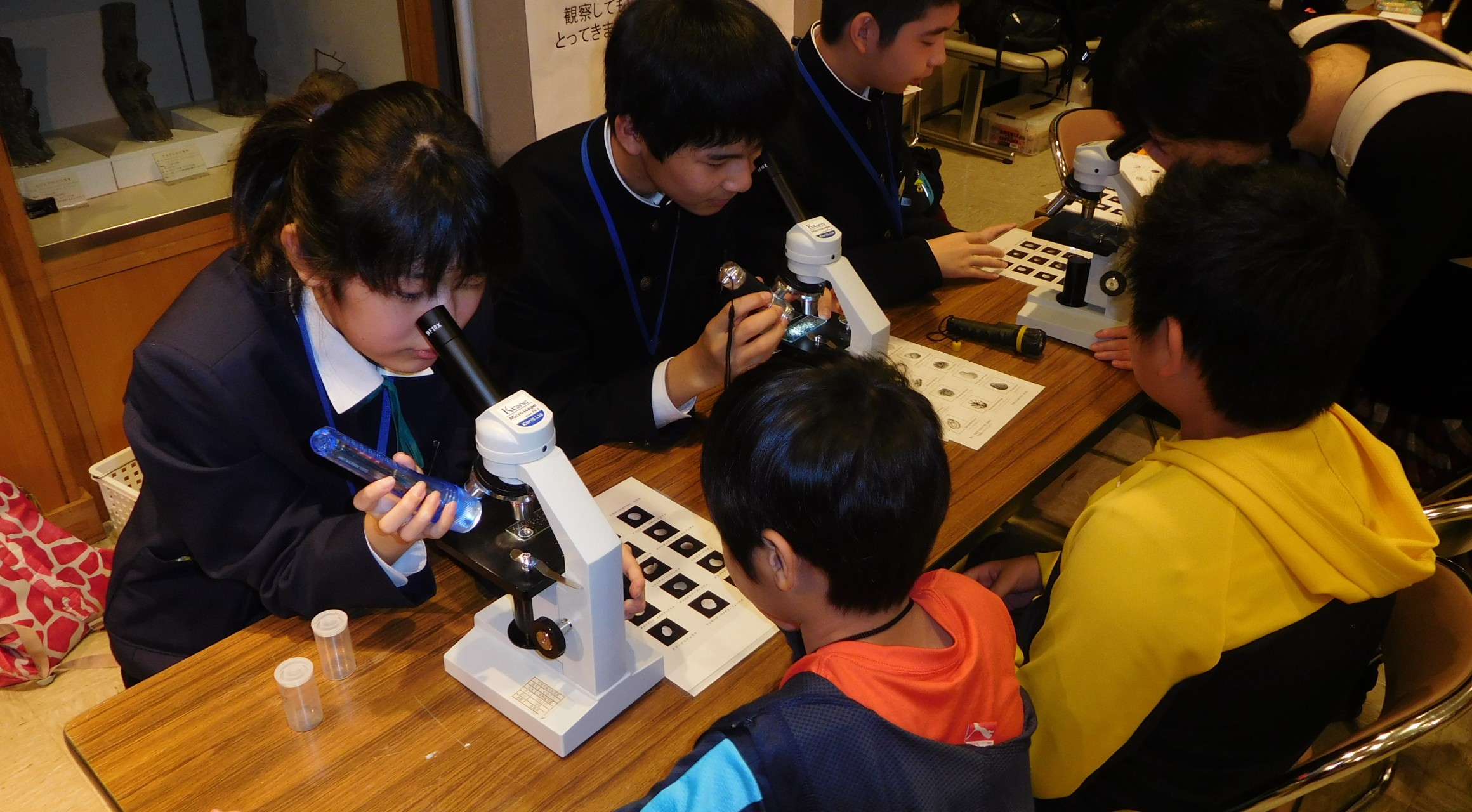 有孔虫の存在をより多くの人に知ってもらう目的で、札幌市円山動物園で行われた「サイエン ZOO ~動物園科学の日~」(10月8、9日)にブース(「砂から有孔虫を探そう!」)を出展し ました。ブースには2日間のべ約300人の人々が訪れ、「有孔虫ってキレイ!」、「有孔虫のこ とがよくわかりました!」、「有孔虫って虫なのですか?」など沢山の感想や質問をいただきまし た。 子どもたちにとって、1年を通して行った海での砂採取は楽しいだけでなく、特に冬や雨の日 は強風や荒波、寒さでより一層厳しいものでした。