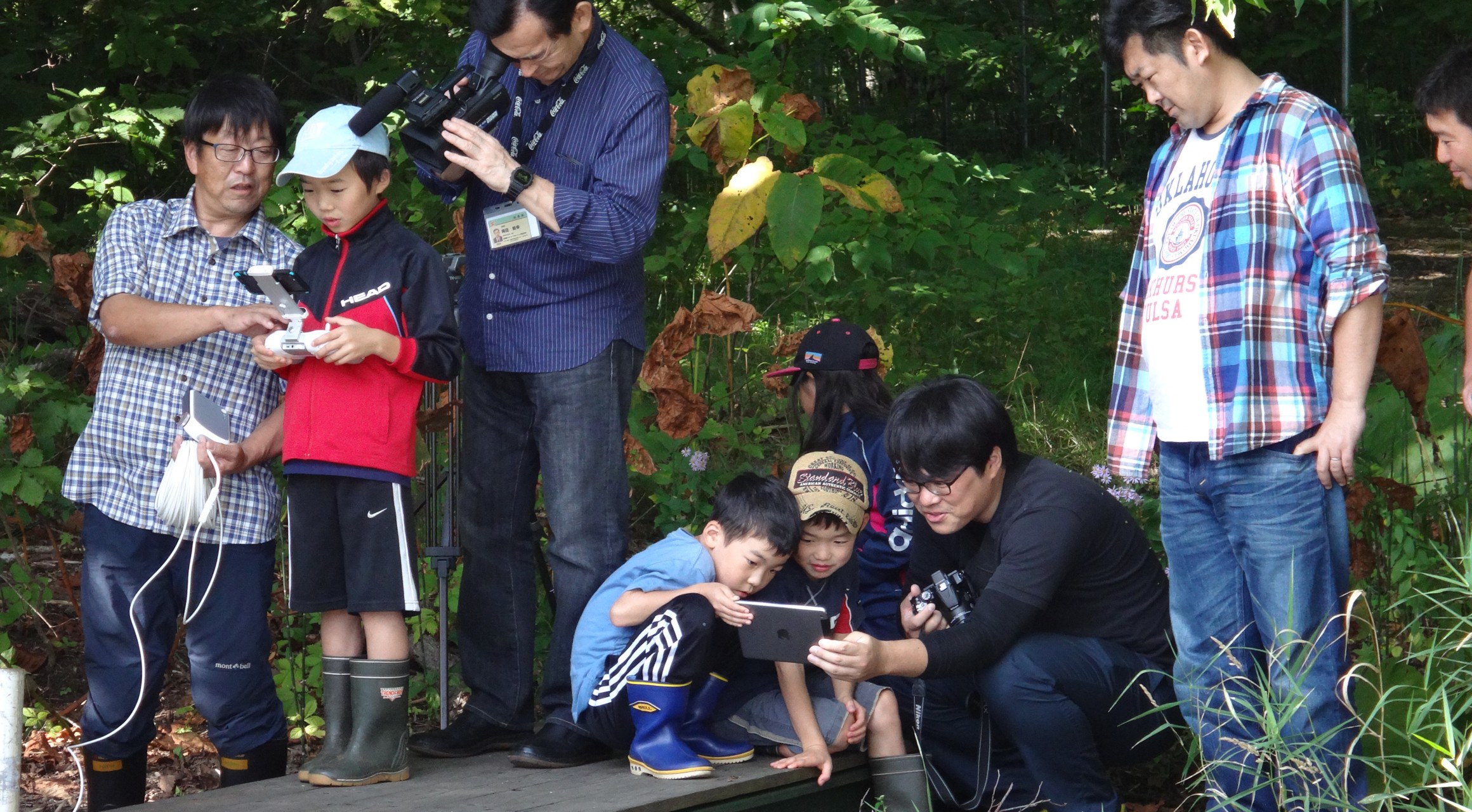 出張観察会は平成 29 年 9 月 16 日に大沼公園で大沼ラムサール隊の子供達と一緒に「大沼の湖底調べ」 を行いました。実際に子供達に水中ドローンを操縦してもらい大沼の湖底を調べてもらいました。バッテ リーが切れるまで夢中になって操縦しているのが印象的でした。