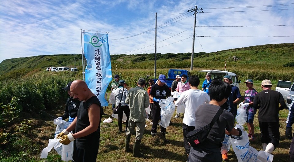 講演会終了後はこの日参加してくださった島民の他、羽幌シーバードフレンドリーツアー参加者、北海道ベースボールアカデミー関係者の皆さんでウミネコの大繁殖地である黒崎海岸の清掃ボランティアを行いました。集められたゴミは羽幌町のご協力により処分されました。