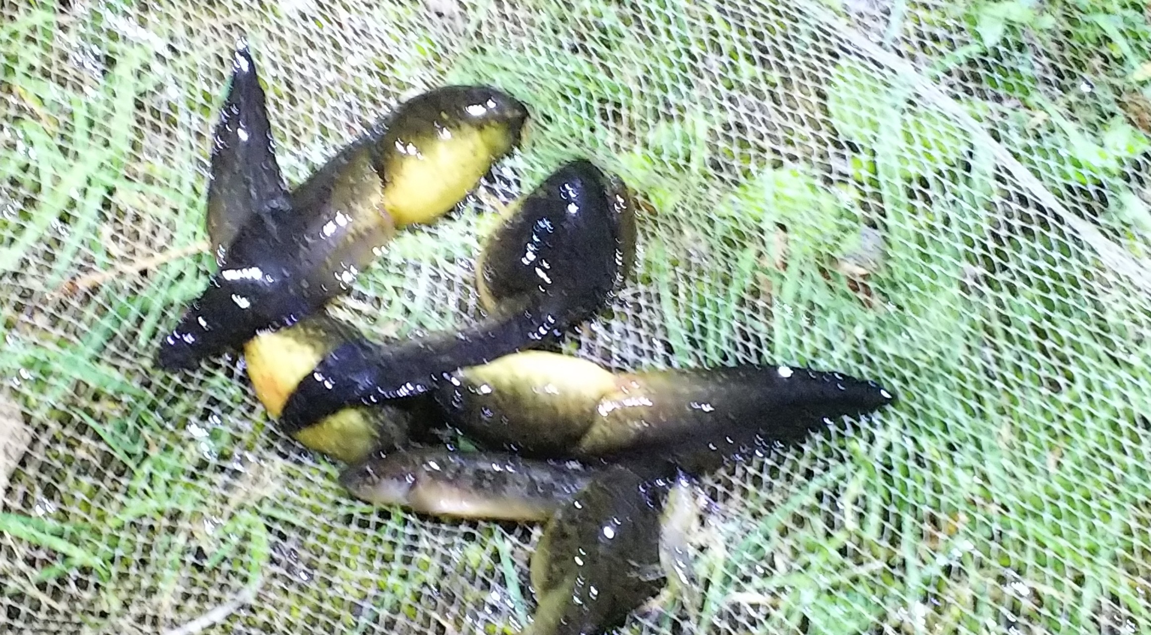 更に、夏場の捕獲調査では、酪農学園大学と合同調査を行ったり、地元の小学生の活動団体「大沼ラムサール隊」活動への協力も行いました。これらの活動では本校生徒が小学生と一緒になって罠を仕掛けたり、捕獲採集を行ったりと普段の活動を超えたつながりを得ることができ非常に良かったと思います。その他にも、地元の方や自治体の方から道具や活動拠点の提供を受けることができ、多くの人にウシガエルRの存在を知っていただけたことも良かったと思います。