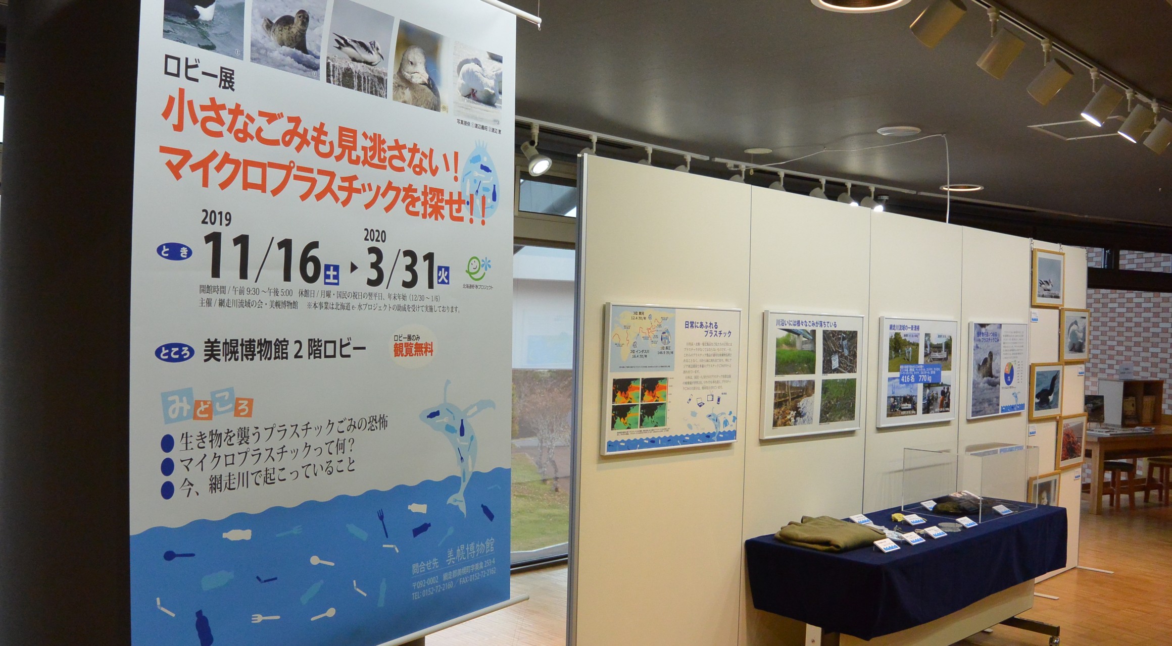 こうした問題を受け、私たちは、網走川流域の1市3町で流域一斉清掃を行いました。その結果、416名が活動に参加し、770㎏のごみを拾いました。このうち、ビニールやペットボトルなどのプラスチックごみが多く存在しました。私たちがごみ拾いを行った場所は、流域内でも限られた場所にとどまり、拾いきれないプラスチックごみがマイクロプラスチックとなって流域を汚染していることは容易に想像できます。そこで、東京理科大学の片岡智哉氏を講師に、マイクロプラスチックの勉強会を実施しました。勉強会には、33名が参加しました。また、美幌博物館で開催したロビー展にも多くの来館がありました。このことは、MPへの関心の高さと言えます。最後に、網走川流域で行ったマイクロプラスチック調査について紹介します。1市3町で行った調査では、MPが確認されました。しかし、個数および質量について全国平均の1.6個/㎥(0.4㎎/㎥)と比較するとMPの数や重量が非常に少ないことがわかります。網走川流域においてマイクロプラスチックが少ないことは、流域一斉清掃や環境学習を進めている成果かもしれません。今後、この問題を受け、プラスチックごみの出ない社会づくりを行うため、さらなる情報発信と、モラルの向上が必要だと痛感しました。