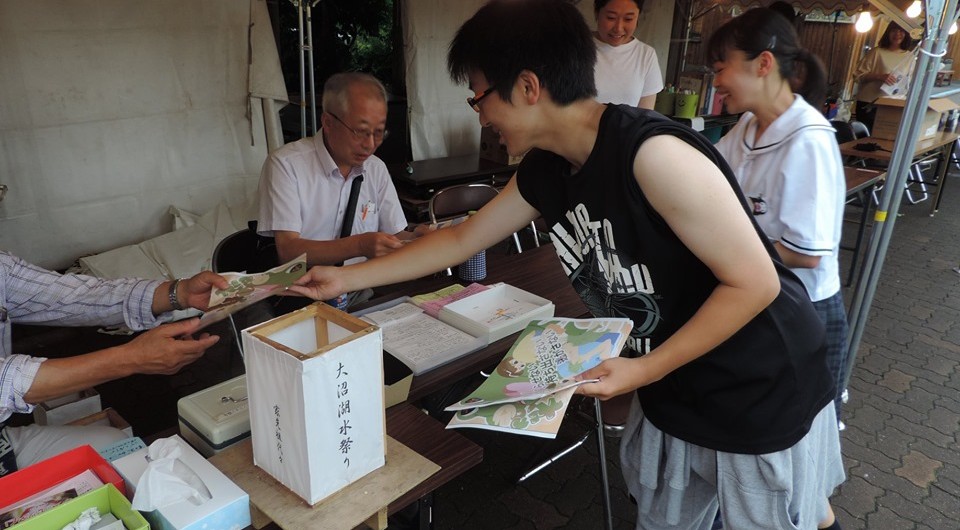 「外来種」では、北海道七飯高等学校と連携し、高校生に外来種普及啓発チラシを作製してもらい、高校生自身が観光で大沼に来た方へ配布するイベントを行いました。7月27日、当日はあいにくの天気で観光客も想定したよりも少なかったのですが、高校生は天気など関係なく元気にチラシを配布していました。