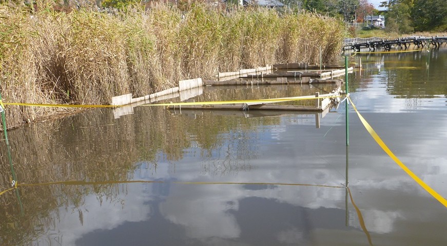 8月24、27日、9月4、7、9、10、12、16日に杭による方形区の補修やブロックの重りによる方形区の強化を行い、9月12日に各方形区内にサンマを餌としたザリガニ捕獲用のワナを4設置し、11月14日まで毎週ザリガニを捕獲殺処分しました。