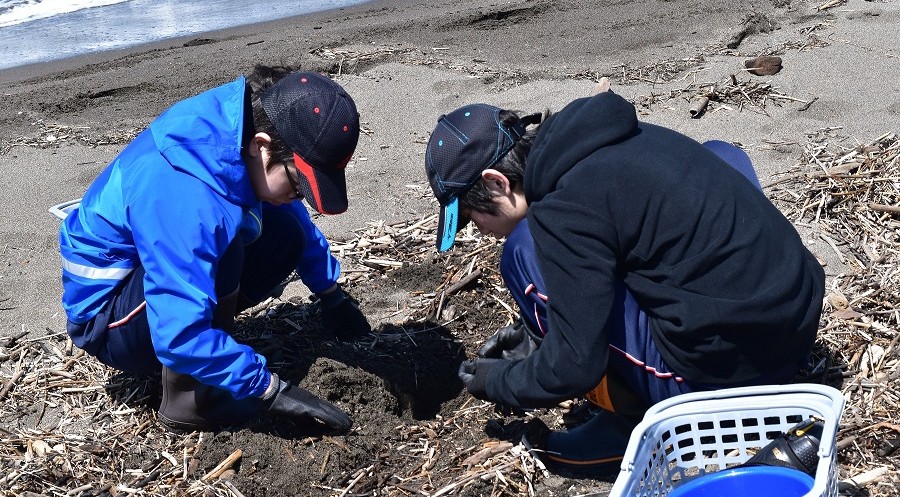 ・各校とも生徒が調査方法を自主的に分担して決めていたおり、調査開始からすぐに効率よく目的別に漂流物の採集調査を実施することができました。