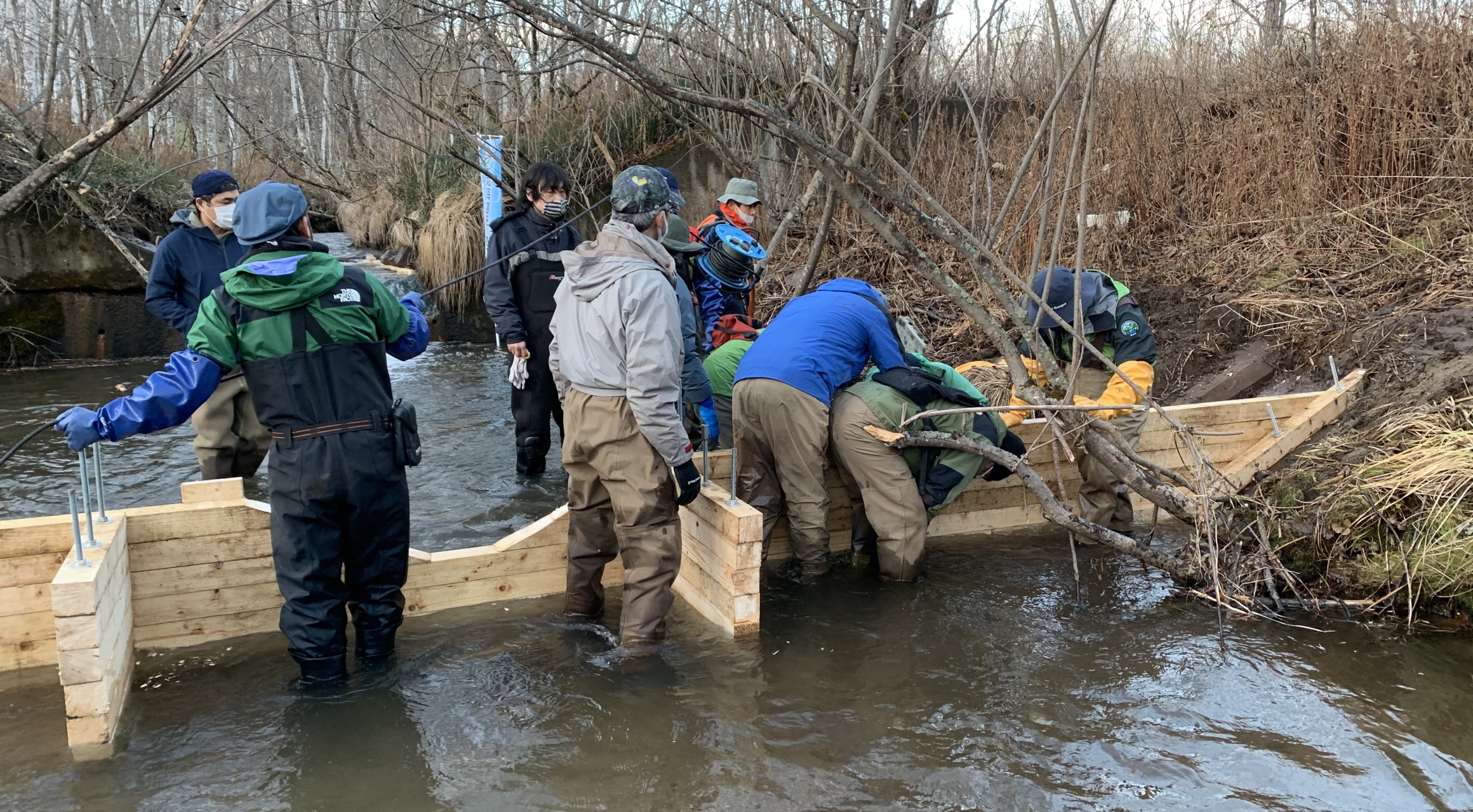 11月21日(土)、釧路自然保護協会による釧路川水系の河川での魚道づくりの様子です!