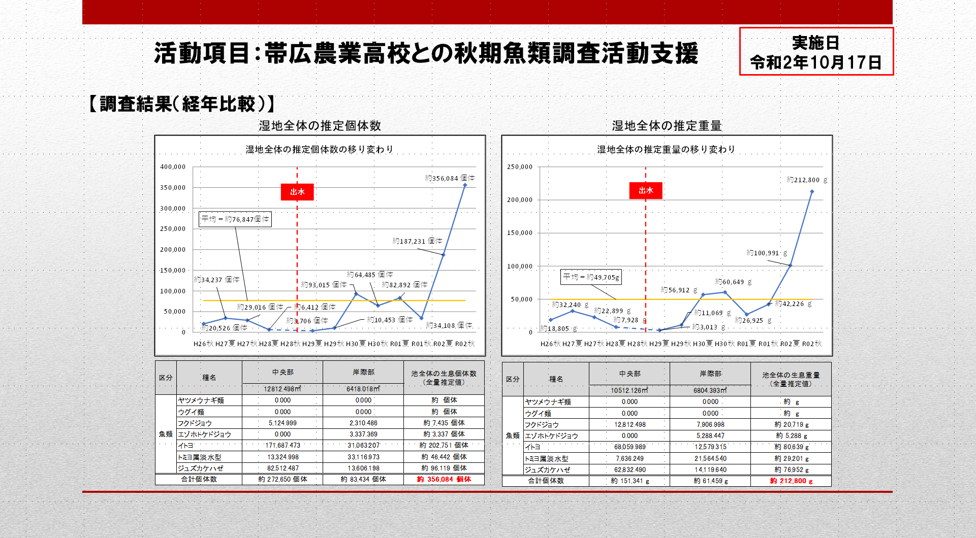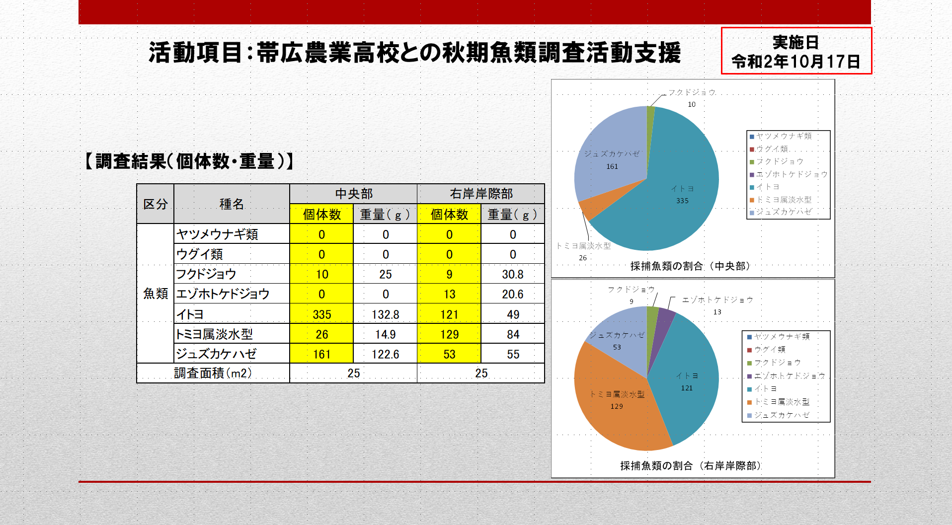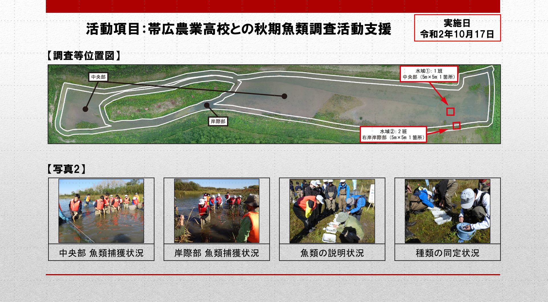 10月17日(土)に帯広農業高校と魚類調査を行った際の活動報告のスライドが届きました!