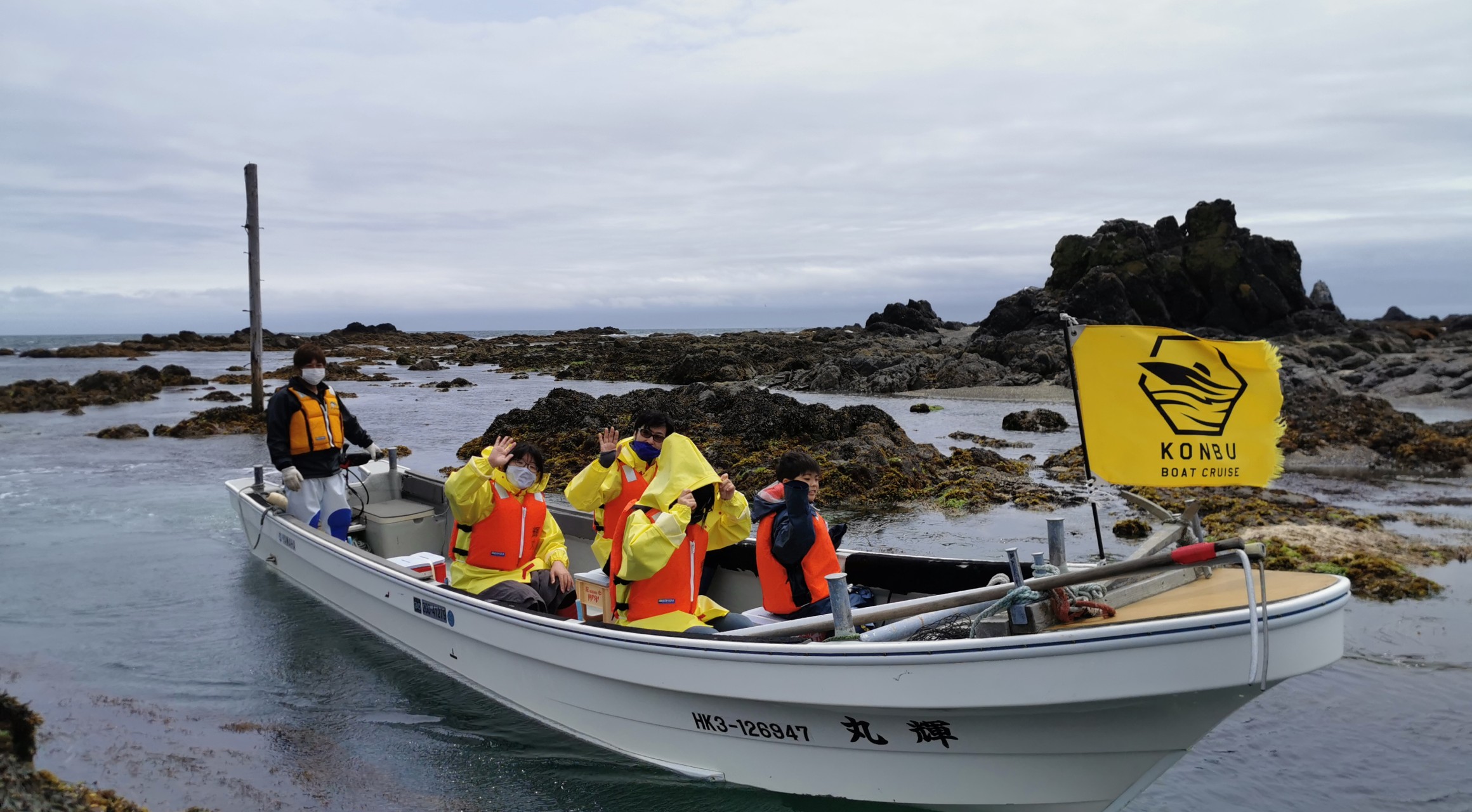 漁業従事者以外の人も乗船航行可能な認可を取得した昆布漁船に乗り、プランクトンネットを使用し調査します。