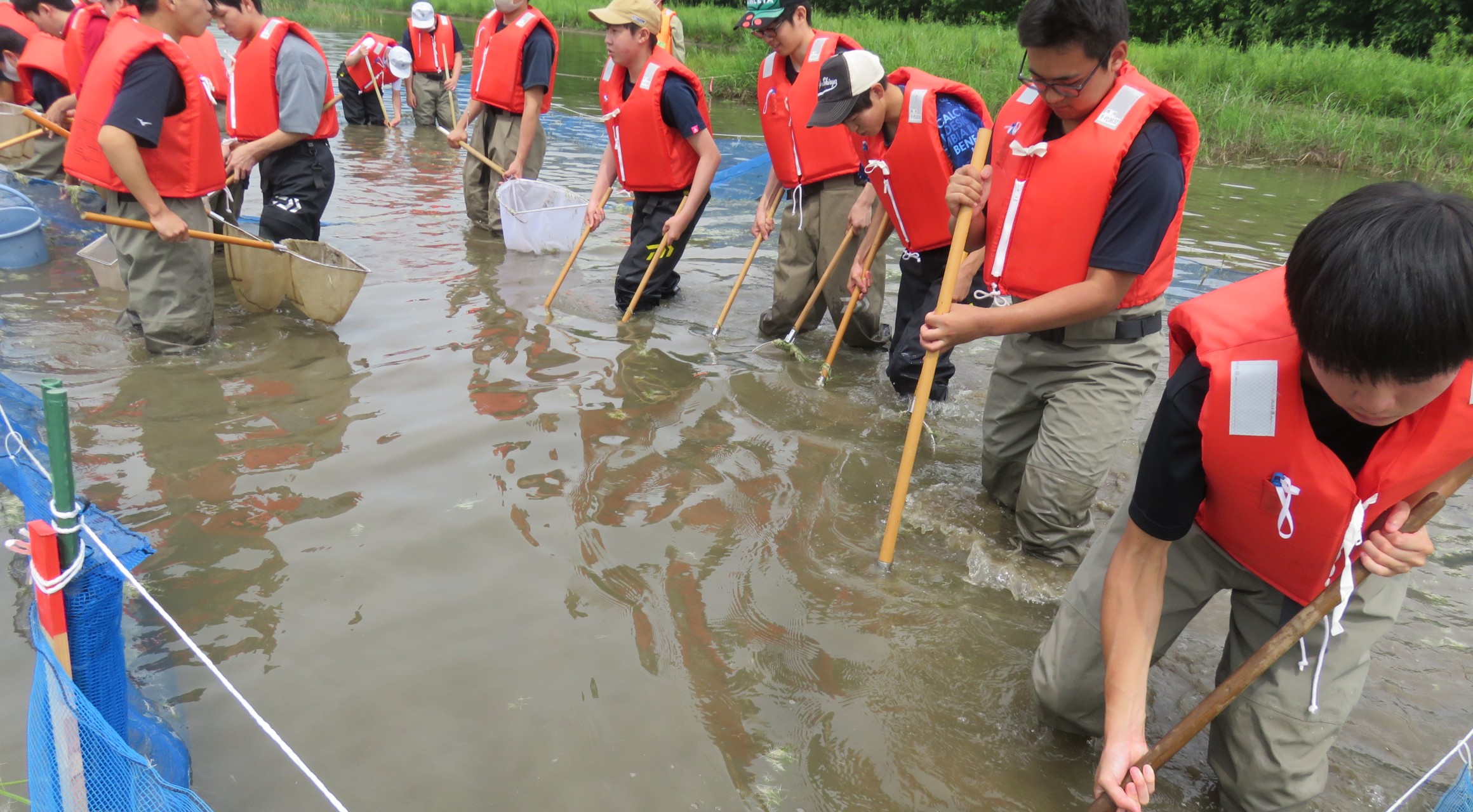 この地区は元々ヤナギ単層林でしたが、湿地造成によって49%増加した205種の生物種数を維持するというもので、今年の湿地内の生物調査(鳥類、水生動物、トンボ類)を4~7月に事務局で実施し、魚類調査を地元の帯広農業高校生徒と連携し7月と10月の2回実施しました。その結果、新たに7種の新記録種を確認し、造成前138種だった生物種数が54%増加し212種となりました。