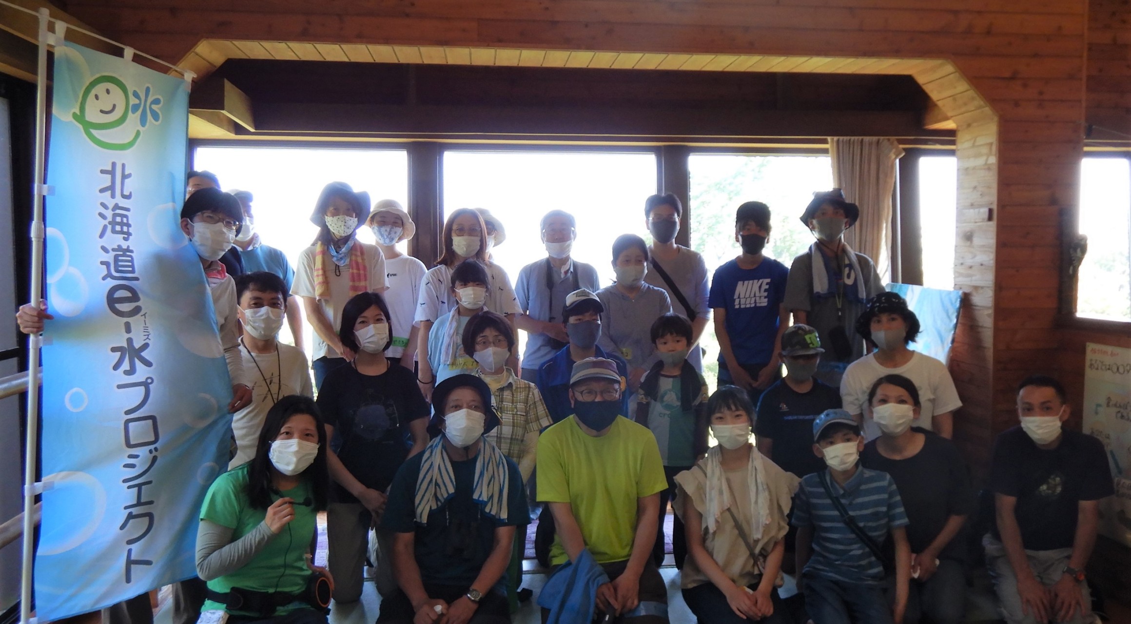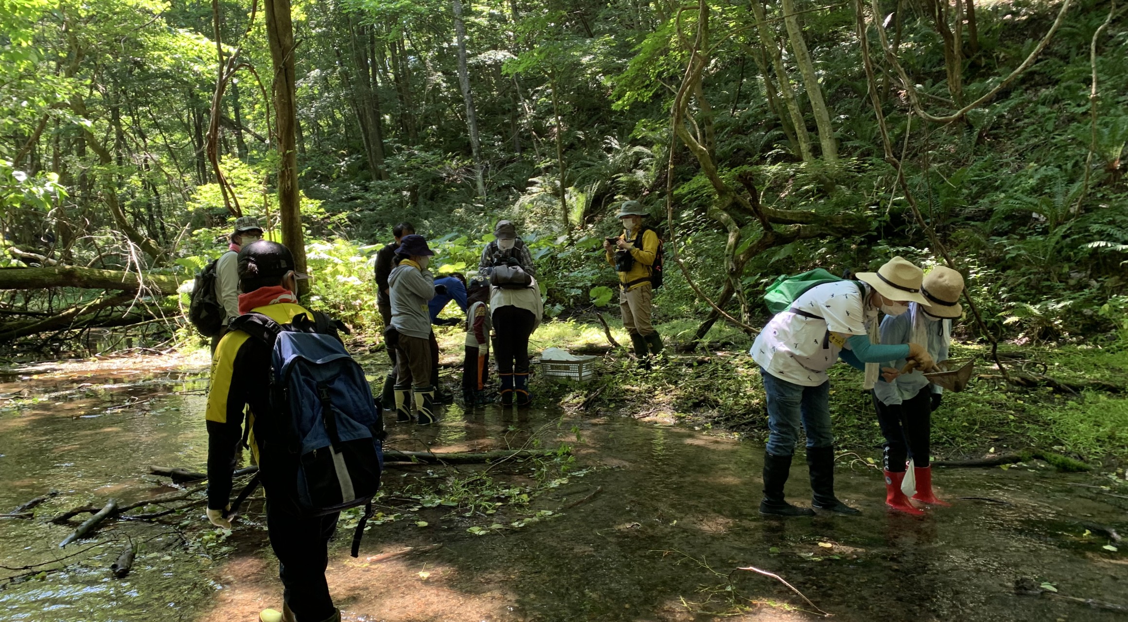 7月の開催当日は地元在住の 21 名の参加者を、最初に美々川源流部を案内しました。ボランティアがリーダーとなりグループに分かれ、湧き水、植物、水生昆虫等を観察し、日本野鳥の会のレンジャーが水生昆虫は水質の良い水に棲むこと、川の生態系に重要な役割を果たしていること等をレクチャーしました。 その後、第二美々橋カヌーポートからタップコップ親水公園までの約 2kmを地元のカヌー事業者「Gateway Tours」の指導の元、カヌーで下りました。操作が難しくカヌーが思った方向に進まないこともありましたが、水草のコウホ ネの花、ニジマス、ウグイスやクロツグミのさえずりを楽しみながら下りまし た。最後は、ウトナイ湖サンクチュアリ・ネイチャーセンター館内から美々川の水が流れ込むウトナイ湖を見ながら、レンジャーが水の大切さや、美々川を含む勇払原野全体をラムサール条約湿地に登録し守っていく必要があること等を伝えました。