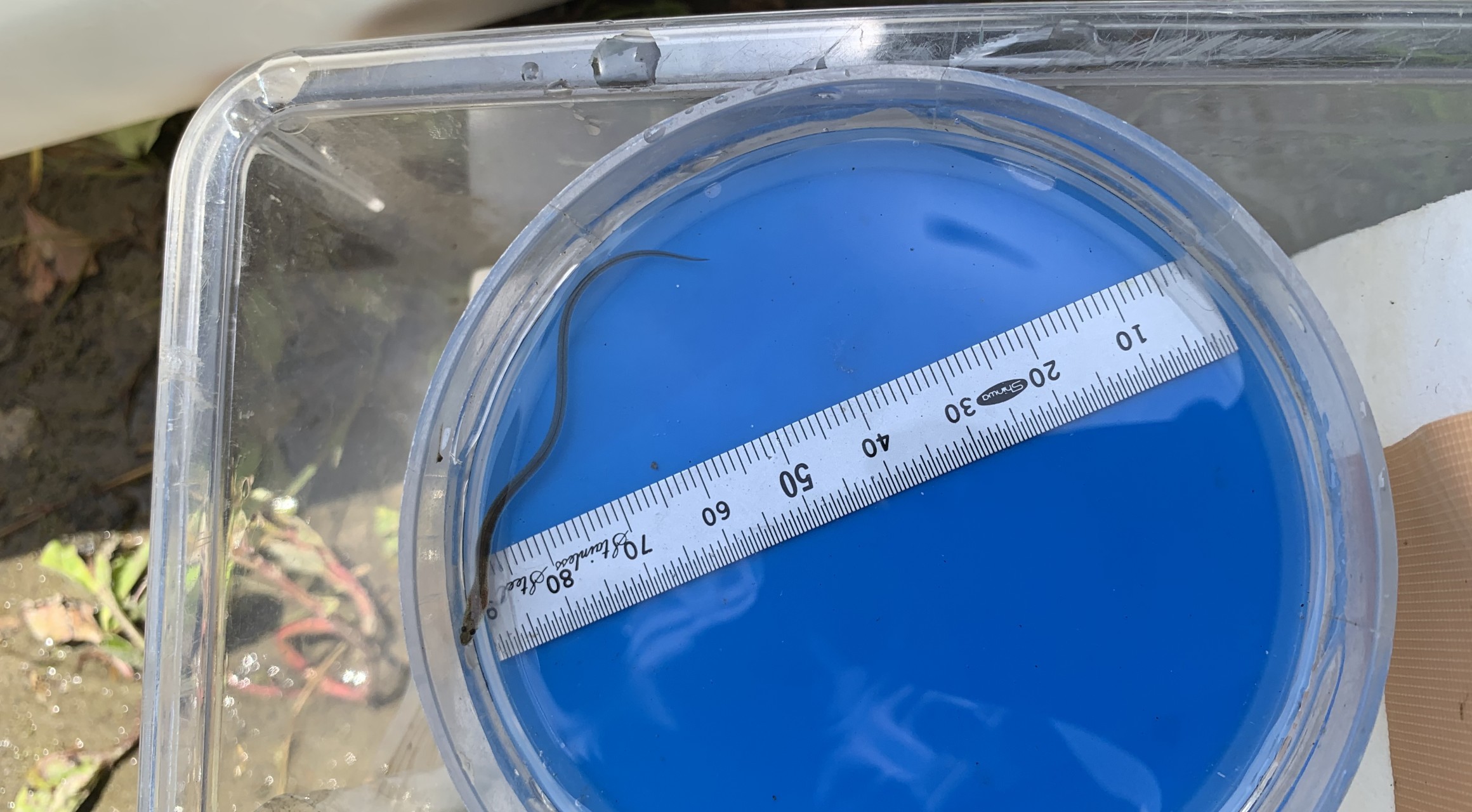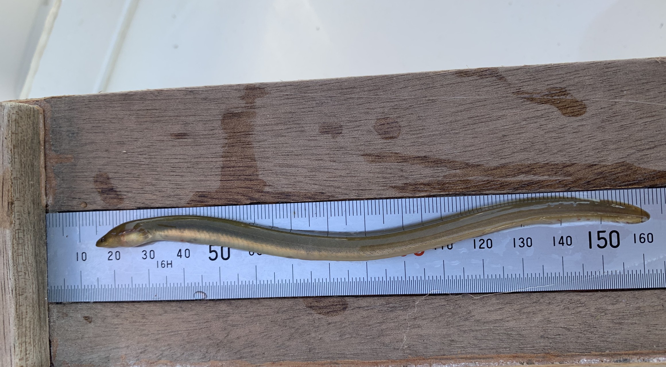 翌令和2年、北海道河川での魚類調査の第一人者である、一社)流域生態研究所・妹尾優二所長を招聘し、調査の立会いとともにニホンウナギや河川環境に関するレクチャーをいただきました。この年の調査では、第2回調査(7/18)において妹尾所長の電気ショッカー調査により、ニホンウナギ(稚魚)を確認することができました。(シラスウナギ 5-6cm 程度・1 尾)ニホンウナギの生息確認とともに、沙流川河口域での多数の魚種が確認され、道内他河川と比較しても豊な魚種である、とのご意見をいただきました。 令和3年調査も妹尾優二氏の指導の下、令和2年の捕獲と同日程 7/17-18 で 調査を行いました。