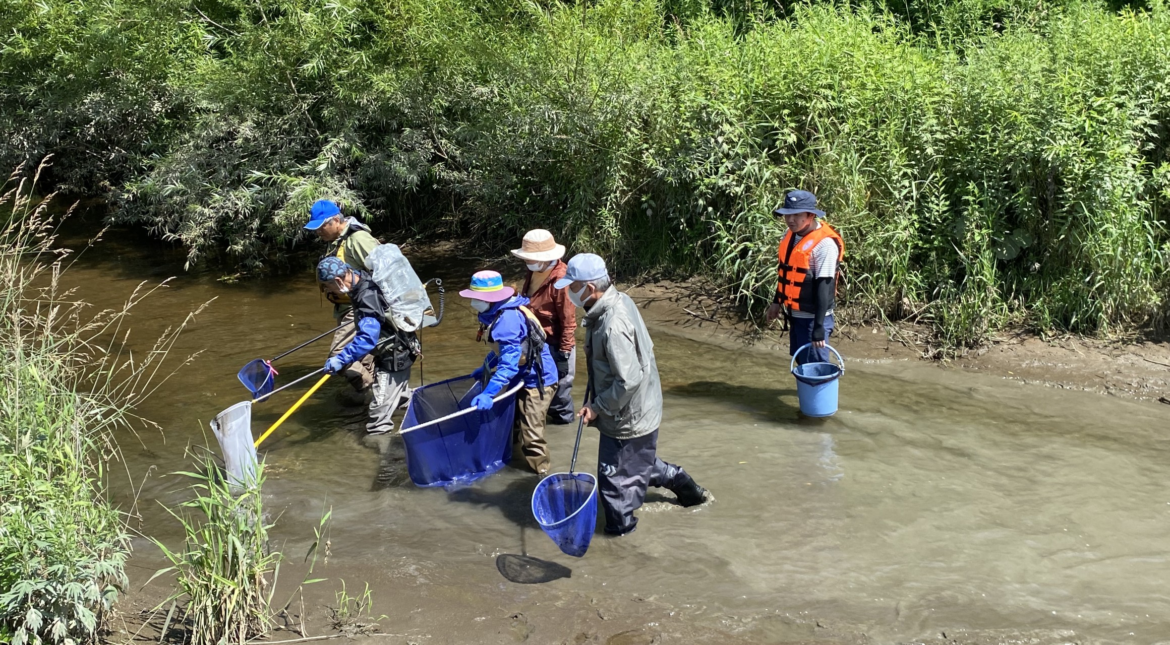 令和4年度調査は、上記の経験を踏まえ、さらに大きく成長した成魚の捕獲を期待して過去2年と同様に妹尾優二氏とともに調査を行いました。過去の実績のある同日程7/17-18の調査日でしたが、あいにく前々日から流域内の降雨により水位は上昇し、濁りもありあいにくの条件下での調査であり、本年度調査ではニホンウナギは確認できませんでした。