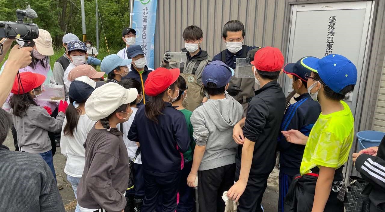6月28日の温根湯温泉スポーツセンター跡地裏ペンケビバウシ川開催では、温根湯地域との連携を図ることを目的とし、北見市立おんねゆ学園の小学校3年生から小学校6年生の児童23名が参加しました。参加した子ども達からは「たくさん魚が捕まえられて楽しかった。またやりたい。」、「川で魚を捕る機会はなかなかないので楽しかった。」などの声を多く 好評でした。