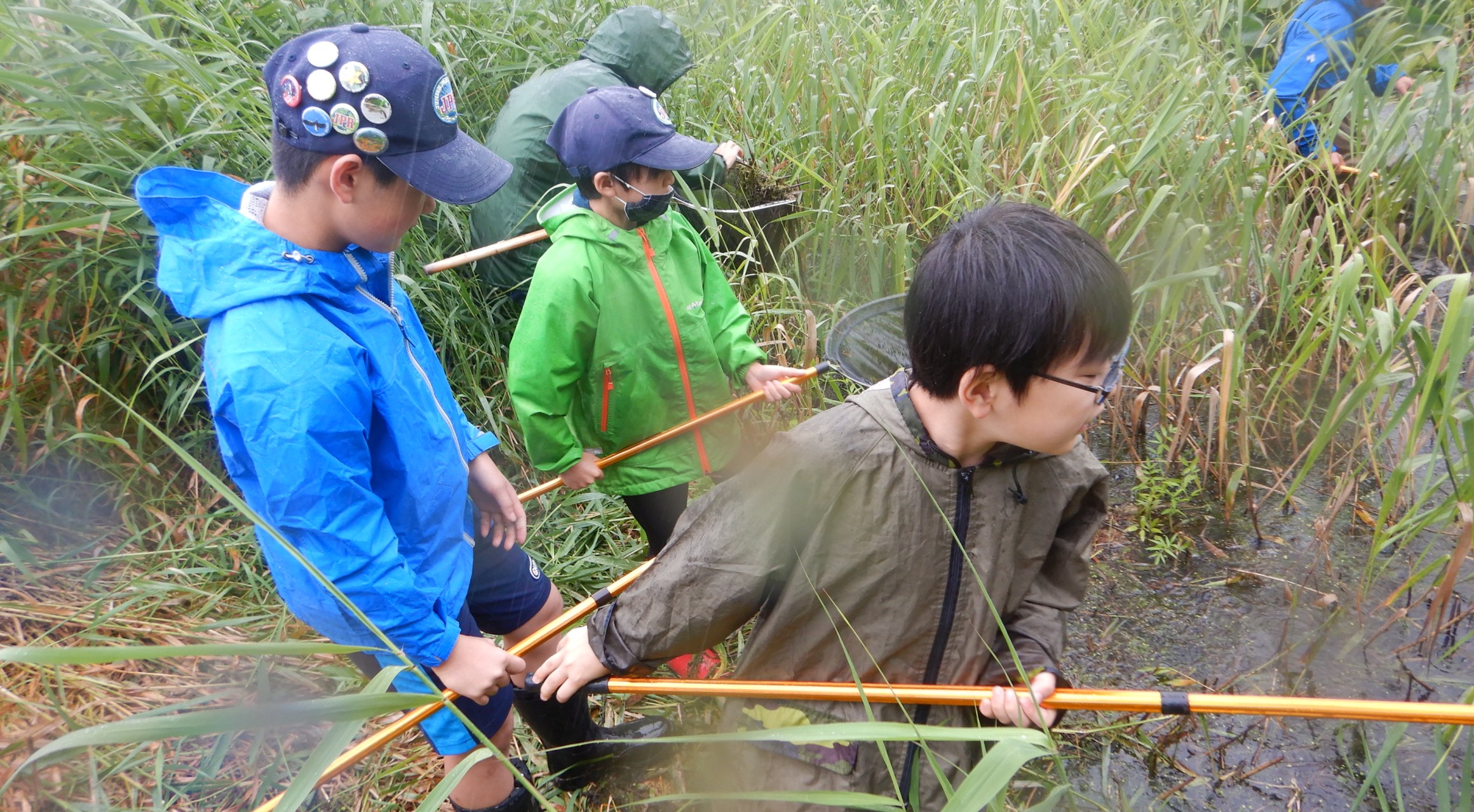第3回は、8月20日から21日にかけて「兜沼宿泊観察会」を実施し、隣接する沼で水生生物を捕まえ観察し、ビンゴ形式で記録していきました。また、早朝にはそこに生息する水鳥の観察も行いました。子どもたちは生きものを夢中になって観察しながら兜沼の重要性を学びました。