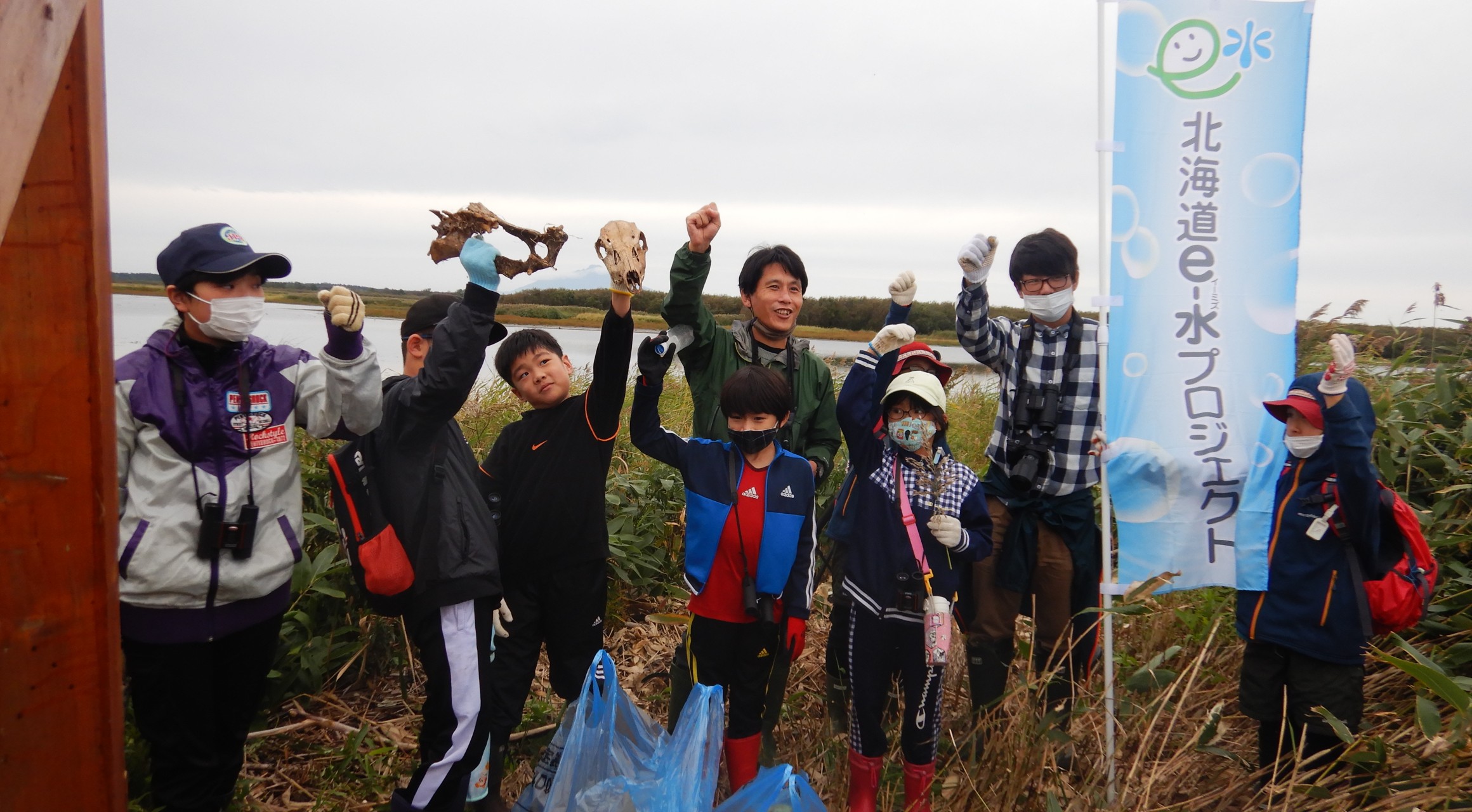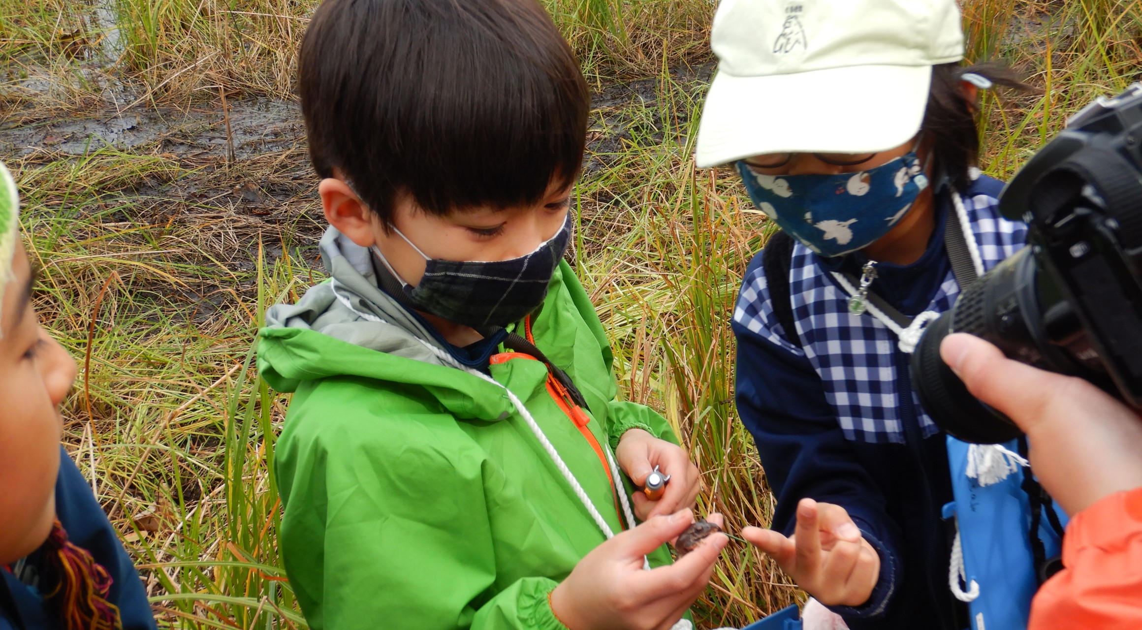 第4回は、9月23日に「普通は入れないペンケ沼に行ってみよう!」を行いました。ペンケ沼をねぐらとする渡り鳥を観察し、子どもたちと一緒にゴミ問題について考え、沼のゴミ拾いを行いました。沼の周辺には、ビニールや空き缶がたくさん落ちており、子どもたちと約5kgのゴミを回収することができました。第5回は、10月15日に「砂丘林探検隊」を行いました。砂丘林で生きものを観察しビンゴ形式で見つけた生きものを記録し、砂丘林が生きものにとってどのような環境なのかについて考えました。子どもたちは楽しそ うに砂丘林を探索していました。今年1年間の活動を通して子どもたちがサロベツ湿原や水辺に触れる機会を増やすことができ、貴重な自然に興味を持てたと考えています。今後は学校と連携しより多くの子どもたちに参加してもらい貴重な自然について知ってもらいたいです。