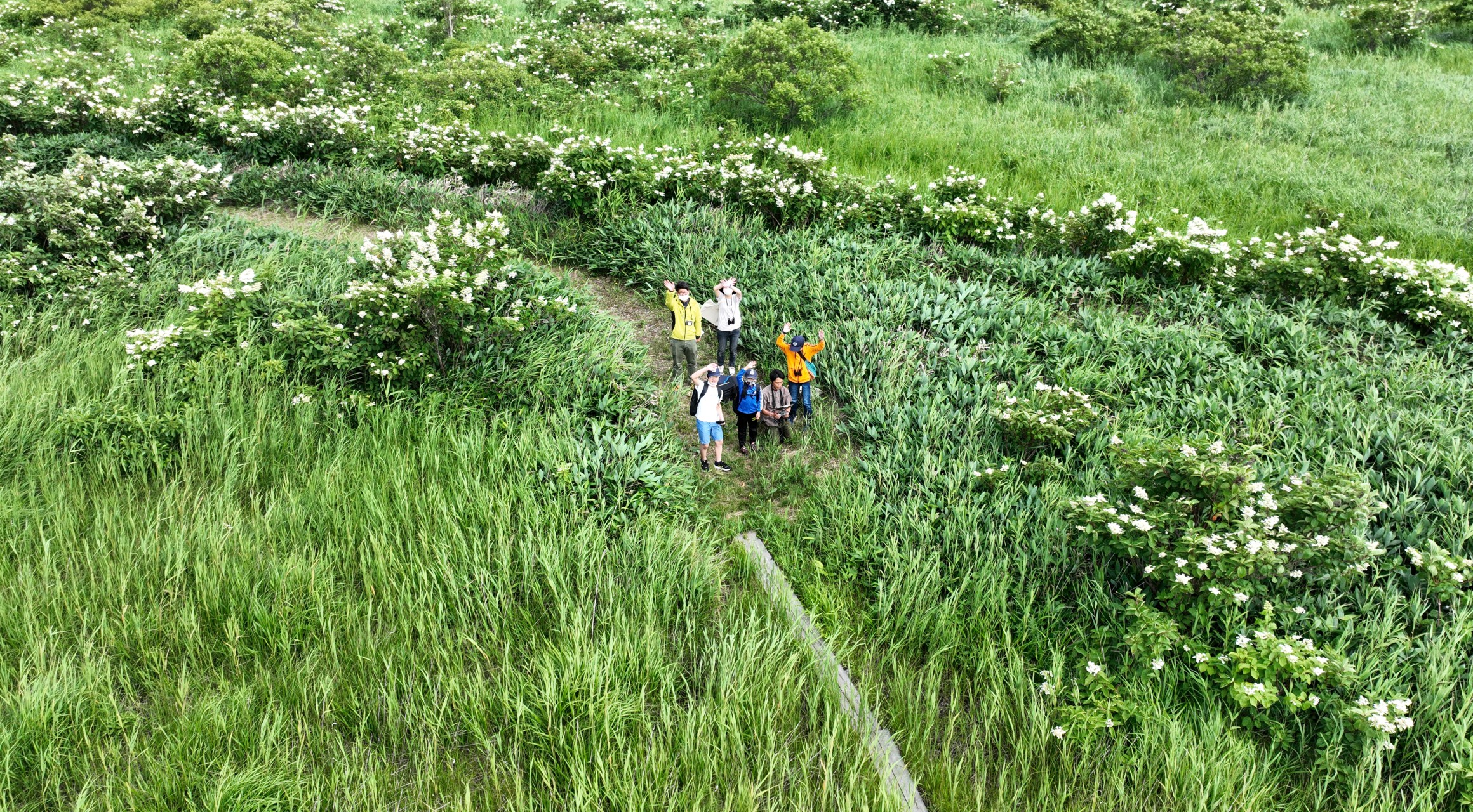 第2回の活動は、7月30日に「空からサロベツ湿原を見てみよう」を行い、ドローンで上空から撮影した湿原や木道周辺に生息する生きものを観察しました。子どもたちは木道で動植物を探し、生きものにとって湿原は重要であることを学びました。