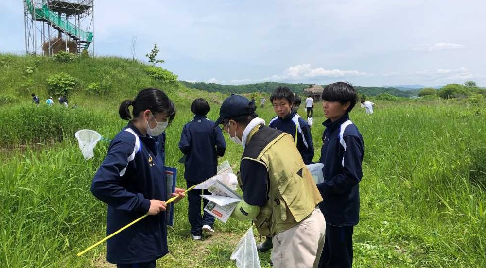 6月12日(月)、羽幌高校との連携授業として、「身近な生物多様性を知る」をテーマにビオトープ公園で生物調査を行いました。今回は北海道池周辺の昆虫、植物、水生生物を調べてもらいました。生徒の皆さんは初めて見る生き物や初めて使う道具に興味津々で、楽しみながら生き物について学んでいたのが印象的でした。調査では、昆虫18種、植物25種、水生生物13種を記録することができました。