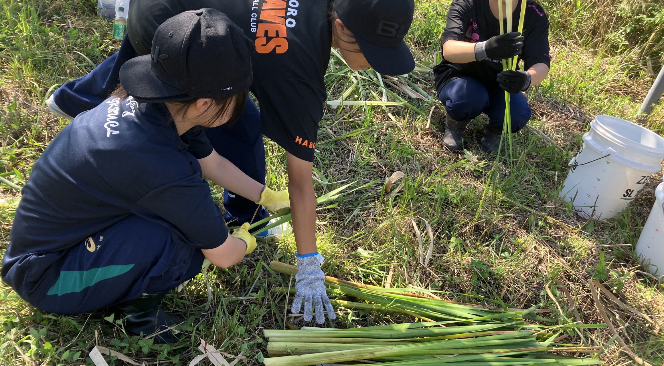 9月10日(日)、羽幌高校ラグビー部の生徒さんと一緒に水鳥池のガマの刈り取りを行いました。8月に水鳥池の浚渫を行いましたが、まだ部分的にガマなどの抽水植物が過剰に繁茂しているエリアがあります。胴長を履いて池の中に入り、ガマの間引きを行いました。刈り取ったガマは10月のイベントに活用するため、一枚一枚葉っぱを分けて、水で洗い、乾燥させています。水鳥池の水環境を改善するため、地元の方の協力を得て事業に取り組んでいます。