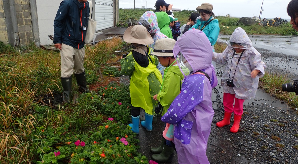 稚咲内海岸は利尻礼文サロベツ国立公園内にあり、ハマナスやハマボウフウなど様々な海浜植物が生育している貴重な環境です。そこには利尻富士を横目に南北に伸びるオロロンラインと呼ばれている有名な道路があり、多くの人が利用しています。しかし、観光客が足を止め、海浜植物を観察することは多くありません。また、居住地などから離れていることもあり、地域住民やその子どもたちが訪れる機会も少ない状況にあります。