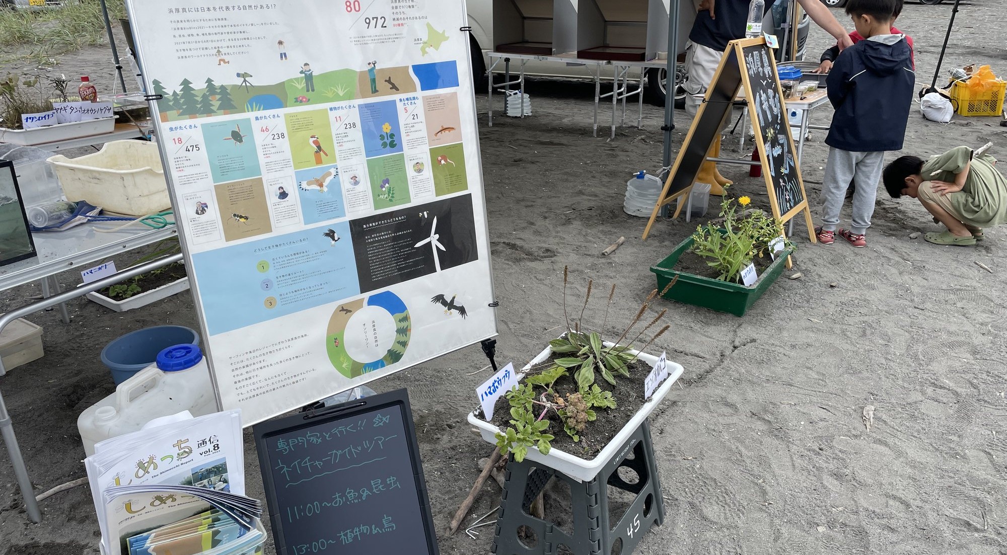 2023年8月6日(日)にNSA公認サーフィン大会の第3回厚真町長杯とコミュニティイベントmeet up ATSUMAにあわせて,浜厚真の自然の魅力と価値を伝えるブース展 示と自然観察会「浜厚真ネイチャー&サーフ2023」を開催 しました.