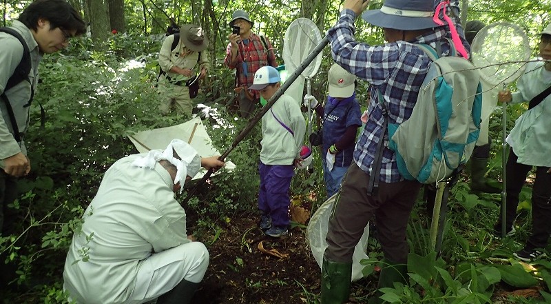 「行事には家族連れほか多くの方が参加され、鳥沼公園の湿地林で虫とりを楽しみ、その後は名人「永盛俊行」さんの昆虫講話を聞いたり、標本づくりについて学びました。