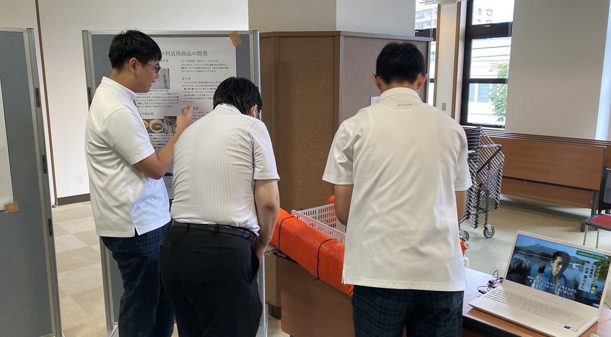 『「科学屋台~高校生のサイエンス研究~」部門に参加しました。私たちの学校の他に2校、全部で4つのブースでポスターセッションを行いました。28日(木)には、高文連地区大会が開催されるので、発表の練習も兼ねていたので、とても有意義でした。』