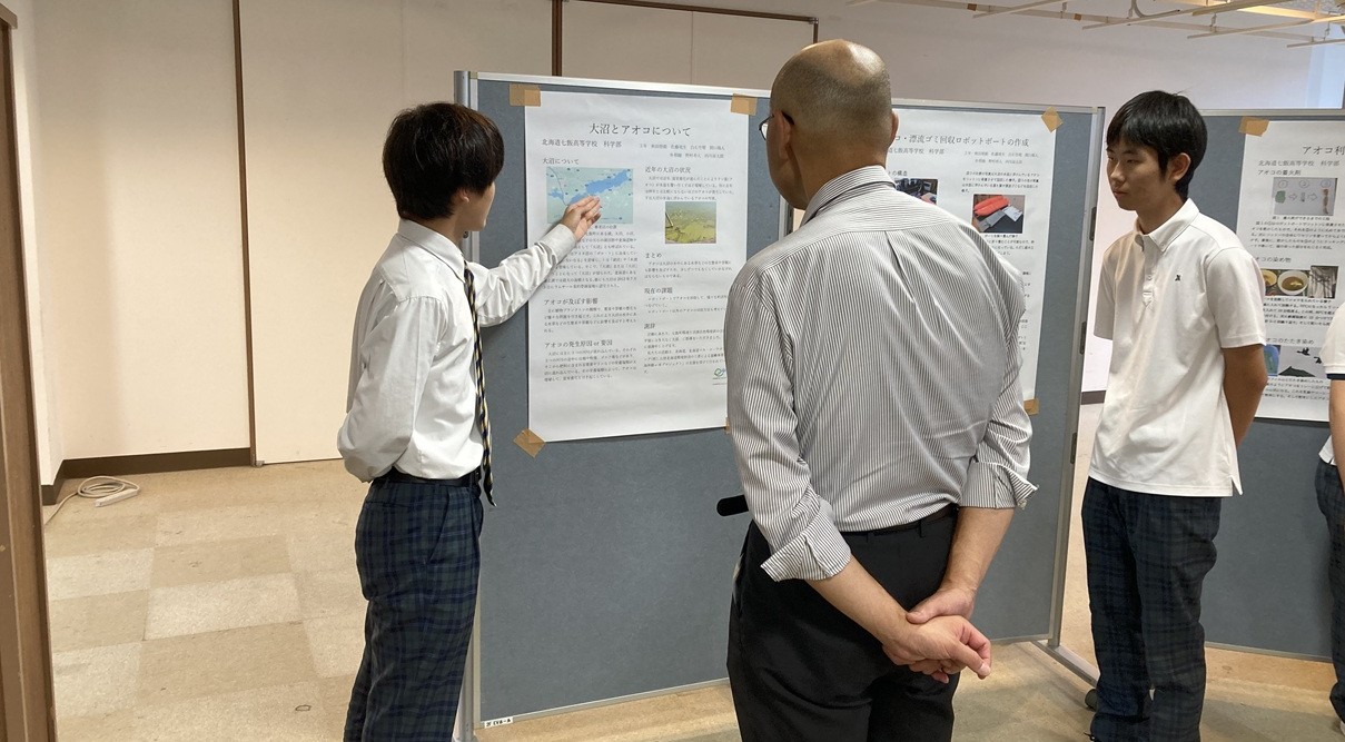 函館市の隣町、七飯町にある大沼(ポロト)の水質改善について、町内唯一の高校である七飯高校の生徒が挑戦しています。北海道駒ヶ岳のふもとにある大沼は、かつては透明度の高い湖でした。近年はアオコが発生するようになり、そのアオコや漂流ごみの回収ボートの改良・改善と、回収したアオコの利活用について取り組んでいます。