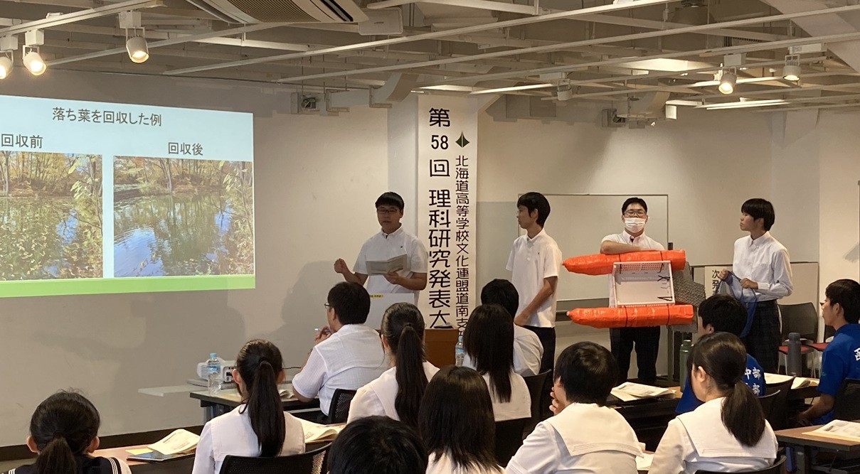 最後に、今年は8月にはこだて国際科学祭に参加し、ポスターセッションに参加しました。この活動は地元の新聞でも取り上げられました。8月下旬には高文連道南支部理科部研究発表大会に参加し、奨励賞をいただきました。また、9月には湿地学会に参加し、ポスターセッションにて特別賞をいただきました。さらに、11月には函館のNHK様からの取材を受け、私たちの活動をローカルニュースで放送していただけました。